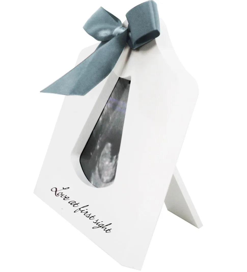 Dooky billedrammen er lavet til at stille et ultralydsbilled frem. Billederammen har et udsnit i en fin form, så man kan se babyen inde i maven. Rammen er lavet så den kan stå på et bord eller en hylde, med en flap bagpå.