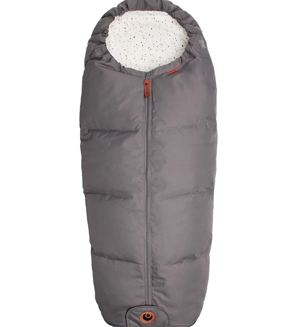Køreposen er superblød og vatteret med uld i ryggen og dun fortil.
