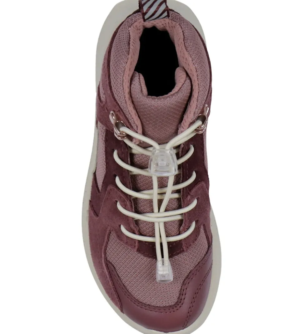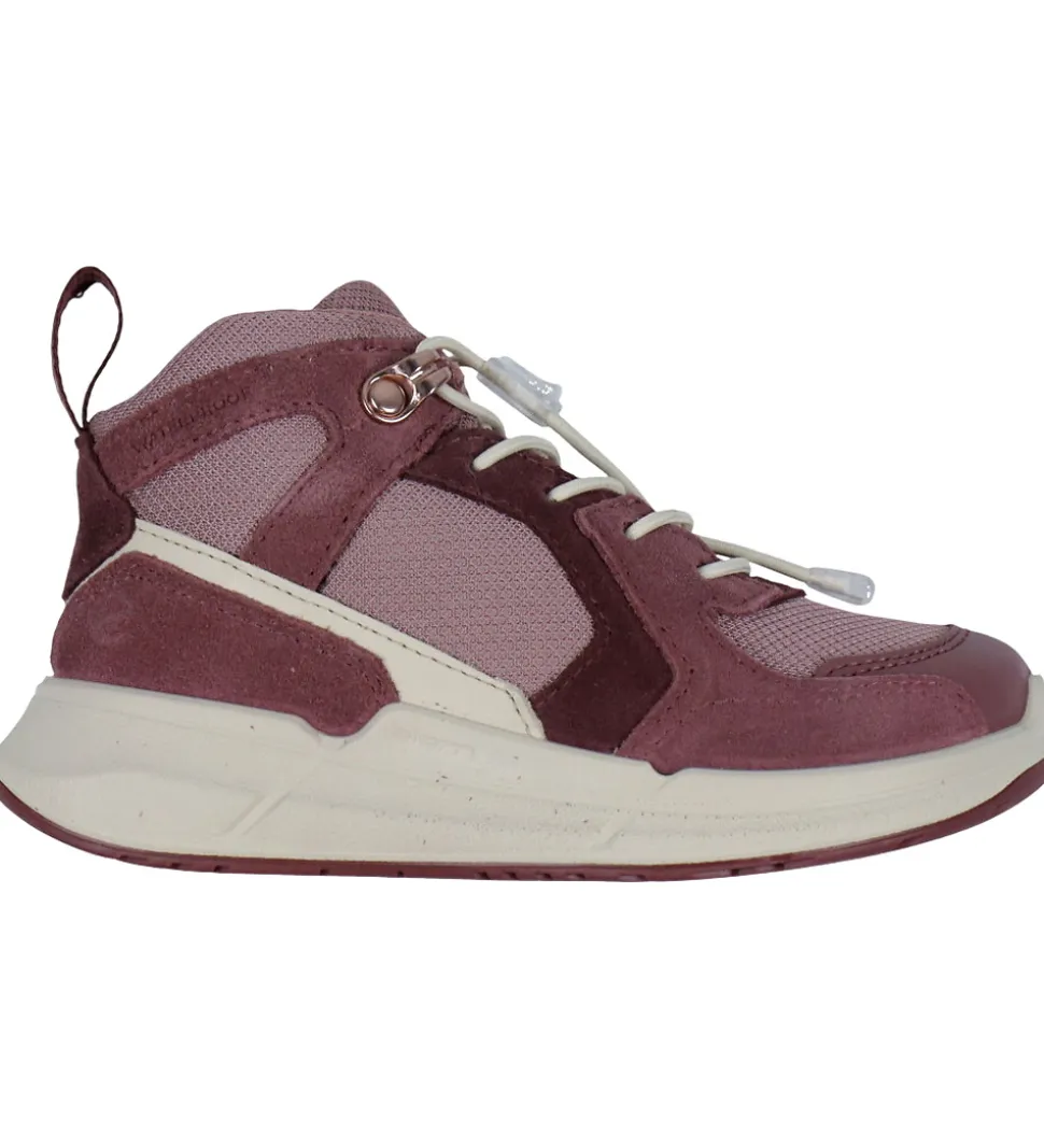 Praktiske Ecco støvler i blommefarvet ruskind og lilla tekstil.