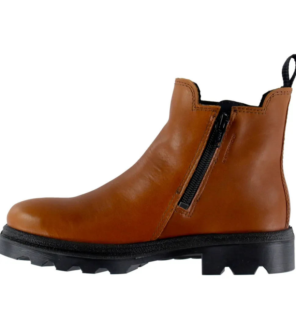 Ecco vinterstøvlerne har et mellemhøjt skaft, som lukkes med en lynlås på indersiden. På ydersiden er der en elastikindsats, og bagpå er der en strop, som gør det nemt at få vinterstøvlerne af og på. Vinterstøvlerne har fast hæl- og tåkappe, som giver fødderne god støtte og stabilitet. Indvendigt er der imiteret ruskind og imiteret uldfor samt udtagelige indersåler. Ydersålerne er letvægtige med en let hævet hæl, som giver et klassisk udtryk. Under bunden er der et groft skridmønster, som sikrer et stabilt fodtfæste.