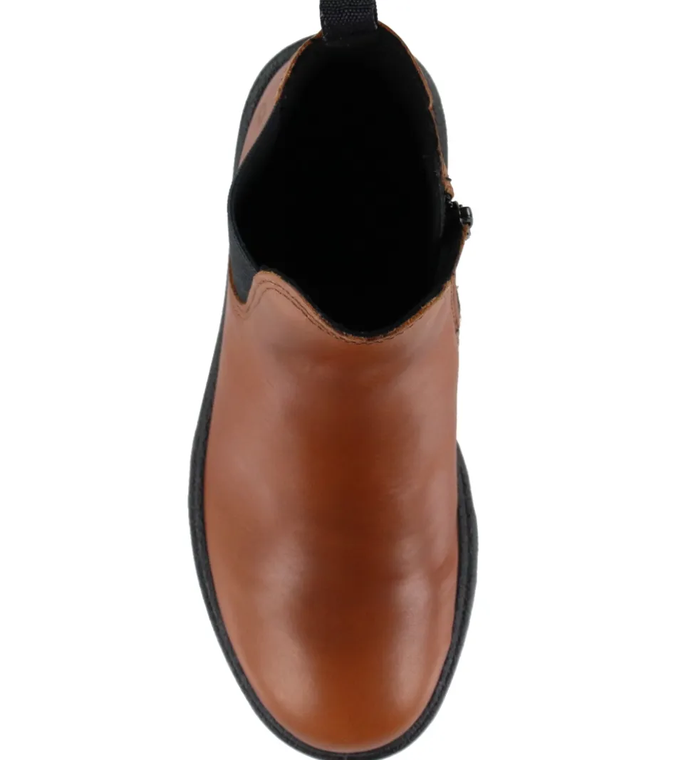 Stilfulde Ecco vinterstøvler i brunt læder med sorte detaljer.