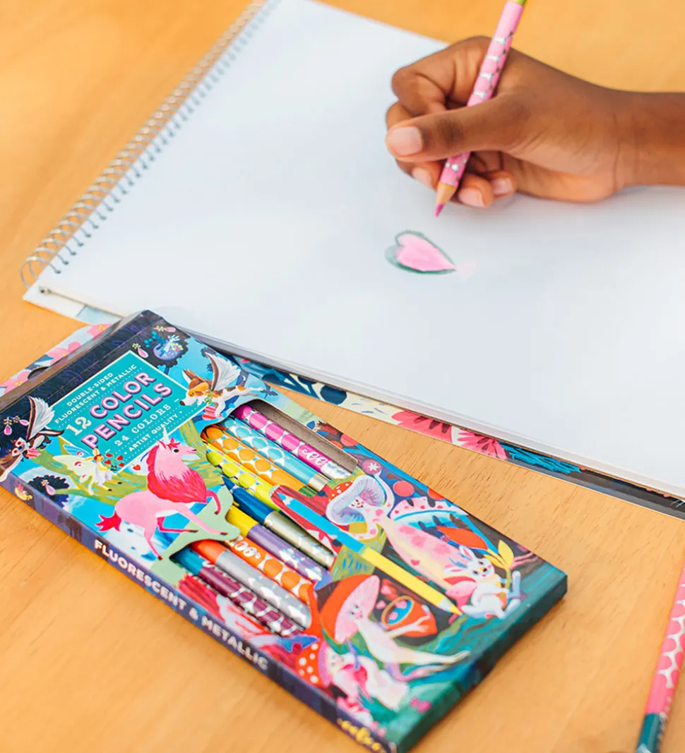 Eeboo farveblyanterne er dobbeltsidede, så der er faktisk i alt 24 farver. Farverne har en god størrelse, så det er nemt også for de mindre at farvelægge.