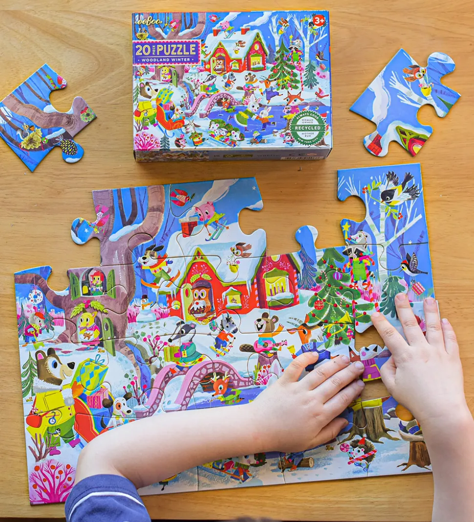 Eeboo puslespillet har samlet en firkantet udformning og består af i alt 20 brikker.