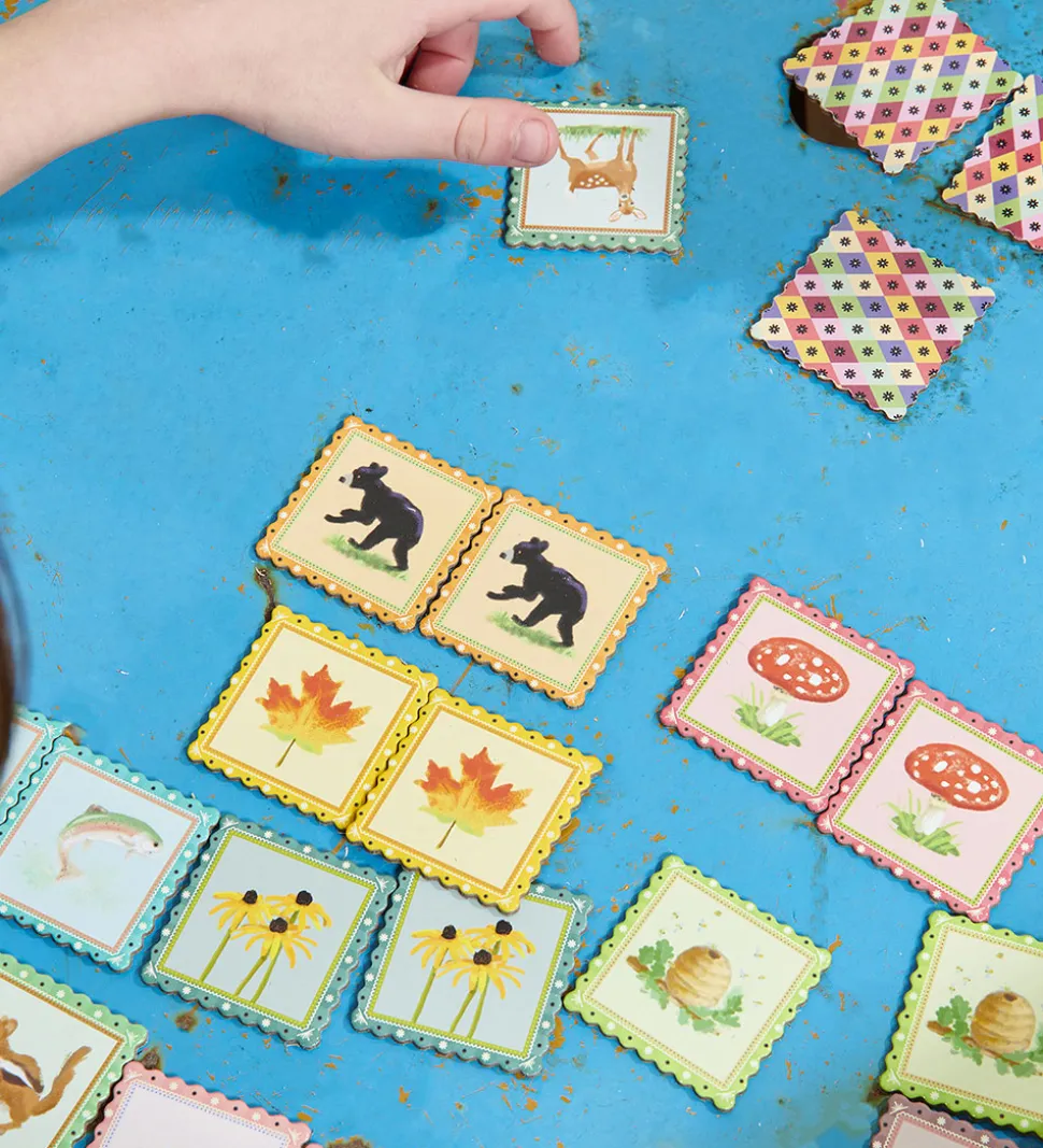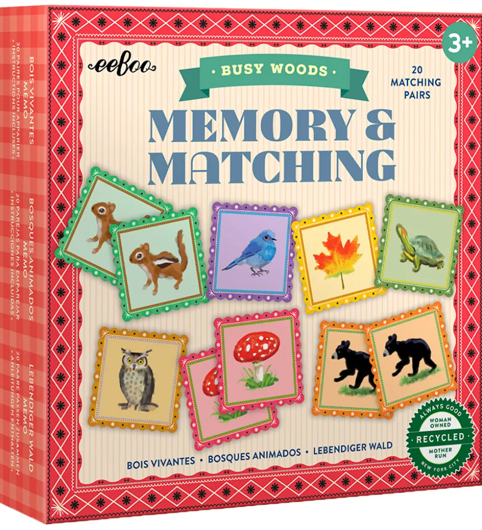 Hyggeligt Eeboo spil i form af dette vendespil med motiver af skovens dyr. Der medfølger: