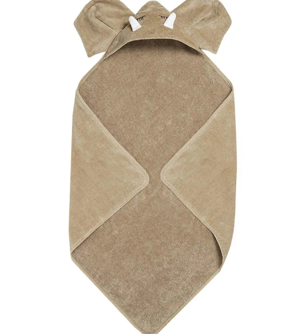 Lækkert Elodie Details babyhåndklæde i brun, med elefantøre og stødtænder på hætten.