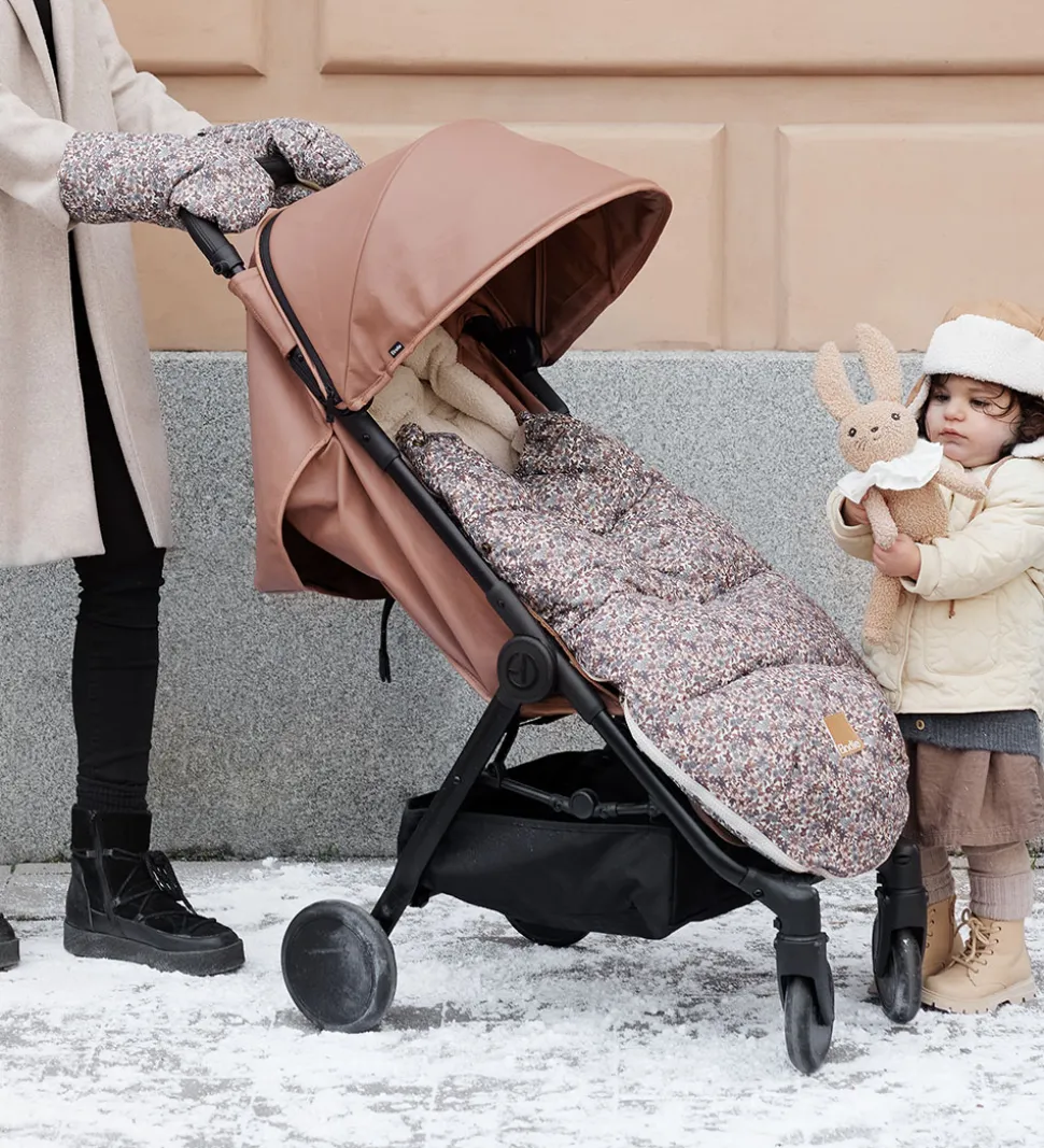 Elodie Details barnevognshandskerne fastgøres med velcro på enhver barnevogn eller klapvogn. Lufferne er forede med brunt, imiteret pels, og de er vind- og vandafvisende.
