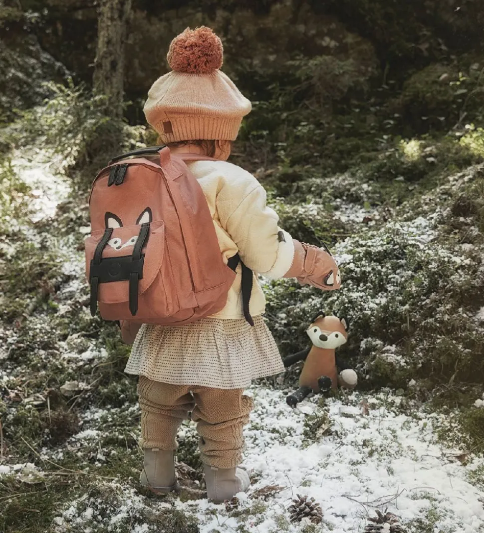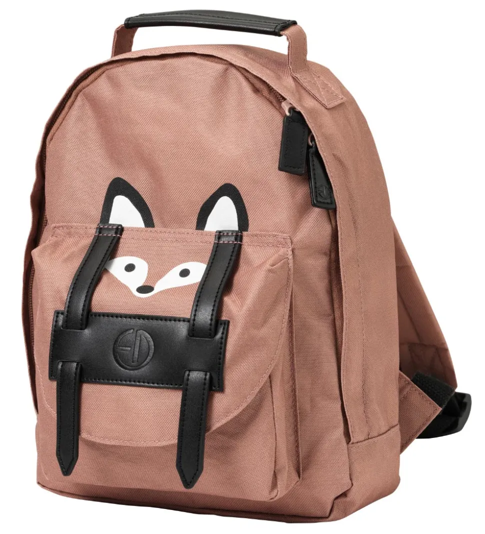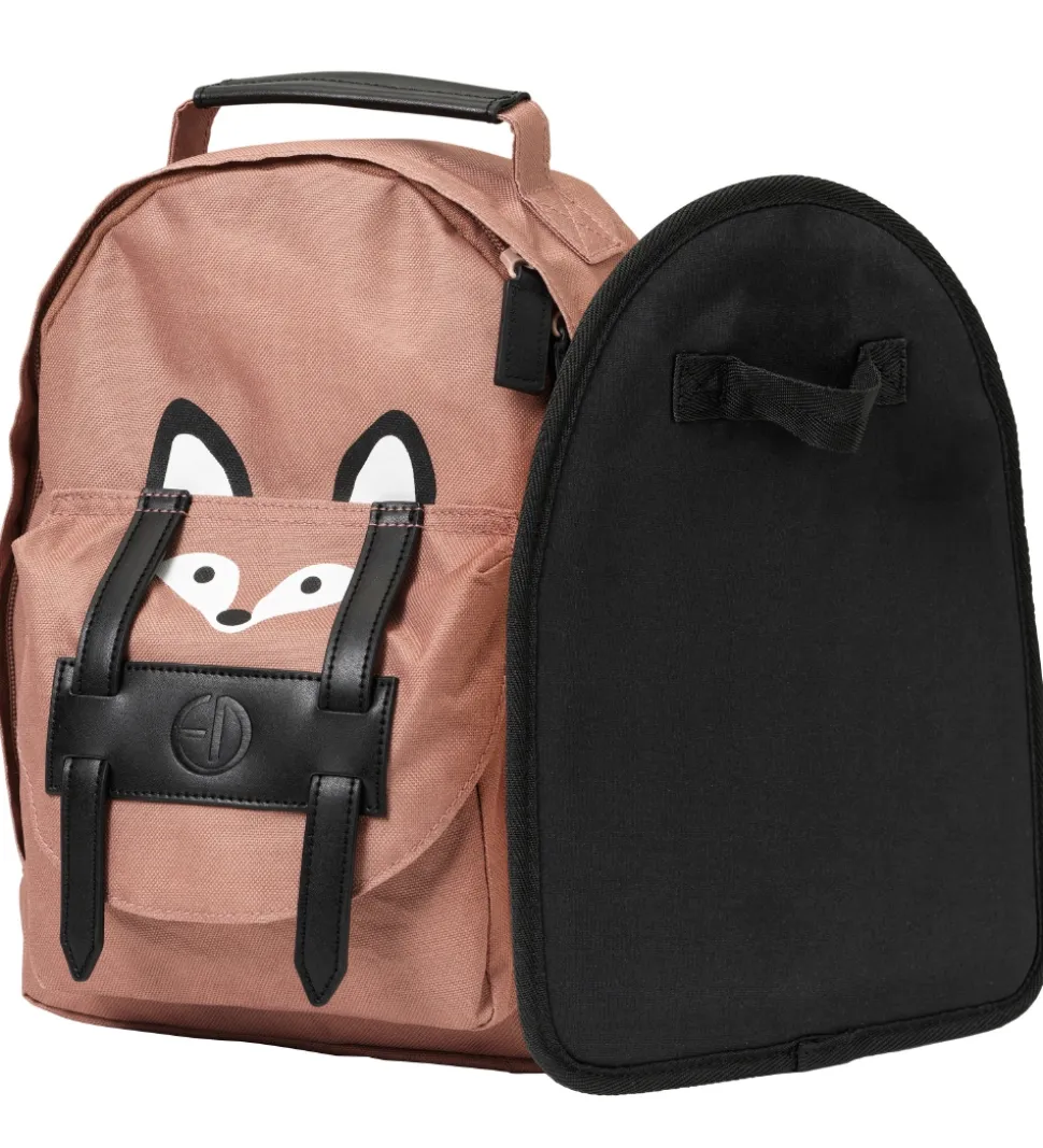 Smart Elodie Details børnehavetaske i rosa, med et ræveansigt i sort og hvid fortil samt flotte, sorte læder-detaljer.