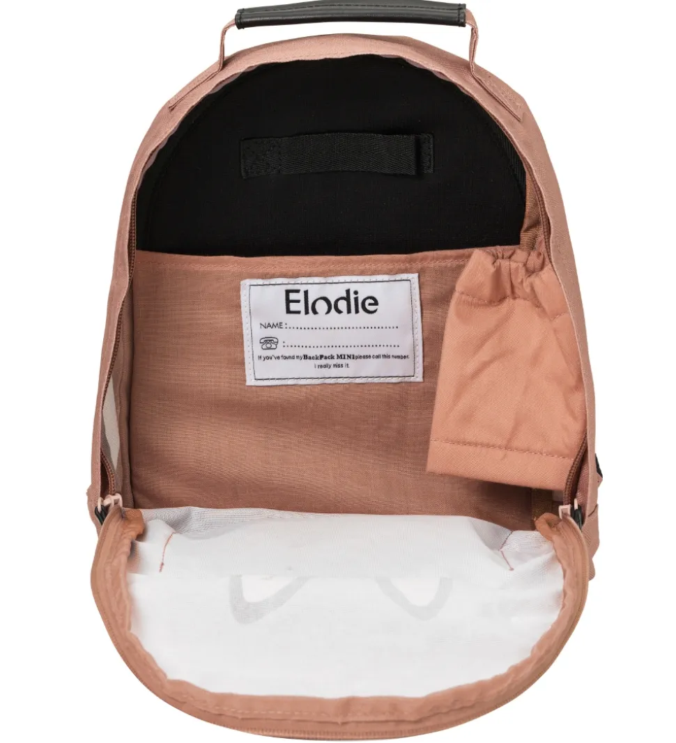 Elodie Details tasken har bløde, justerbare stropper om skuldrene, som kan sættes sammen foran med en bred strop med magnetlukning. Det store rum åbnes med to praktiske lynlåse, der går dybt ned, og foran er der en fin lomme med magnetlukning.
