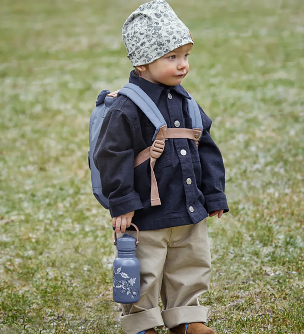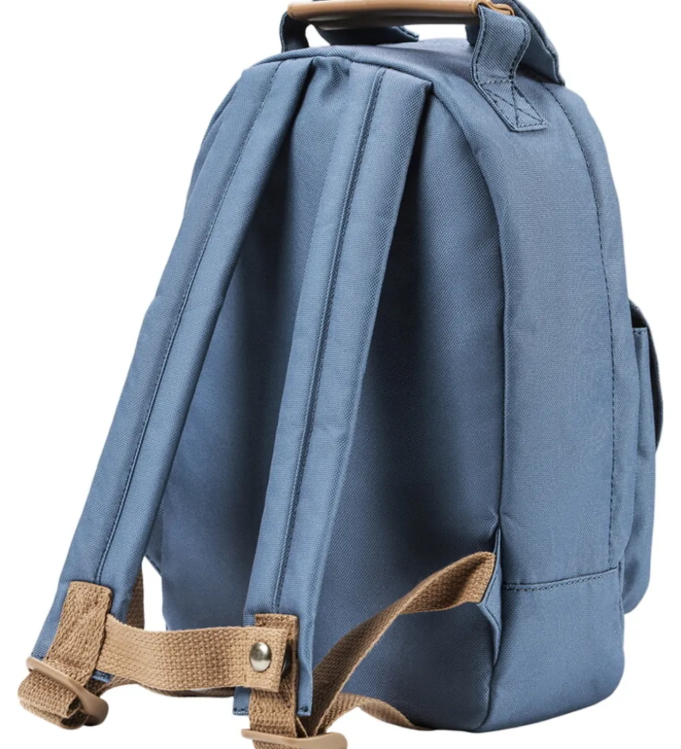 Børnehavetasken har brede, vatterede skulderstropper, som kan justeres i længden, og der er et praktisk brystspænde, som lukkes med en trykknap. I toppen er der en praktisk hank.