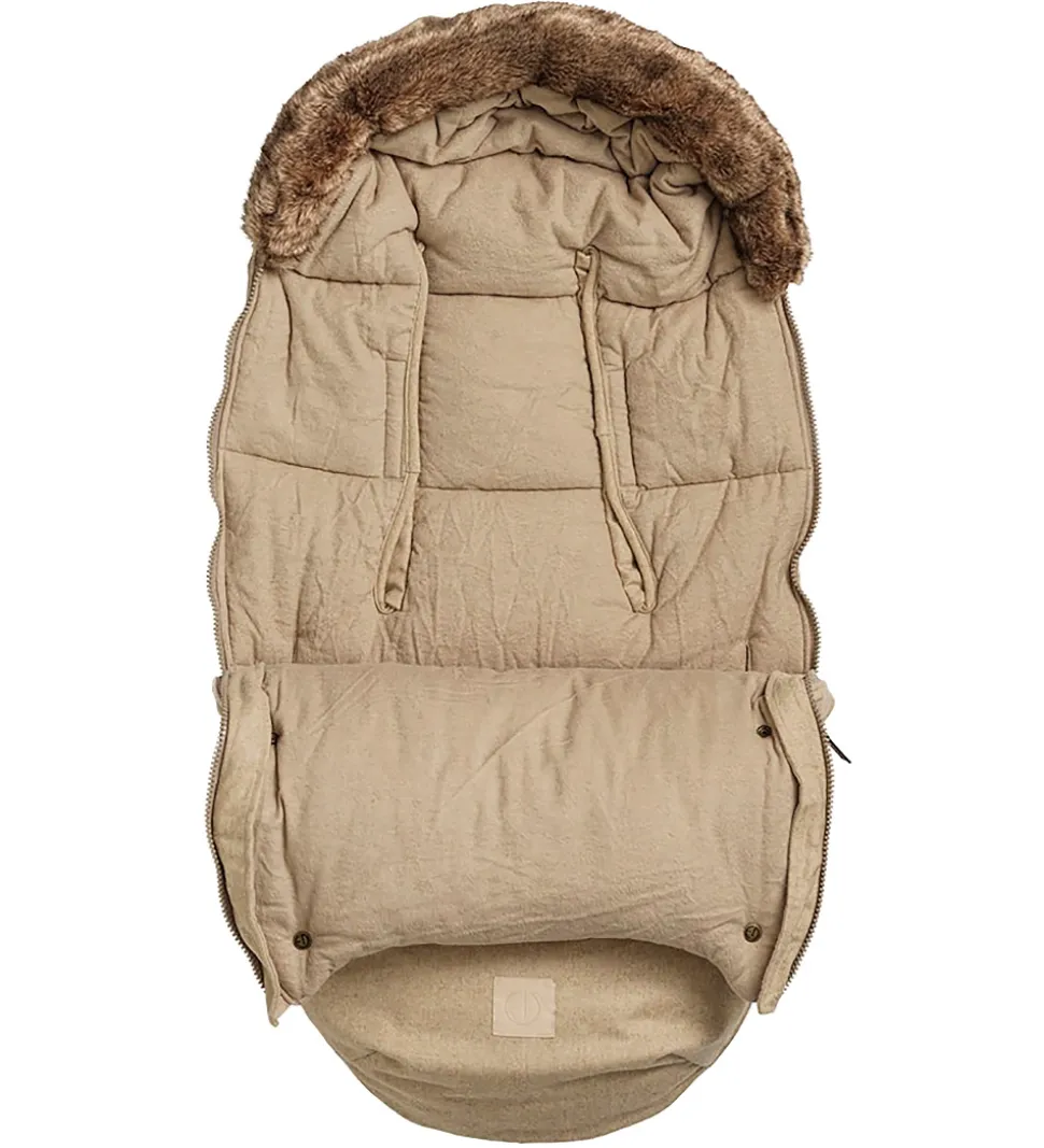 Smart Elodie Details kørepose i beige, med en imiteret pelskant i kanten.