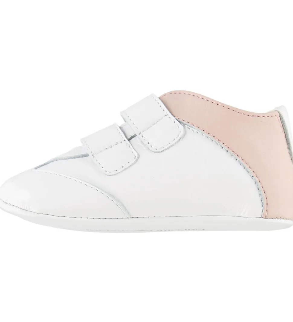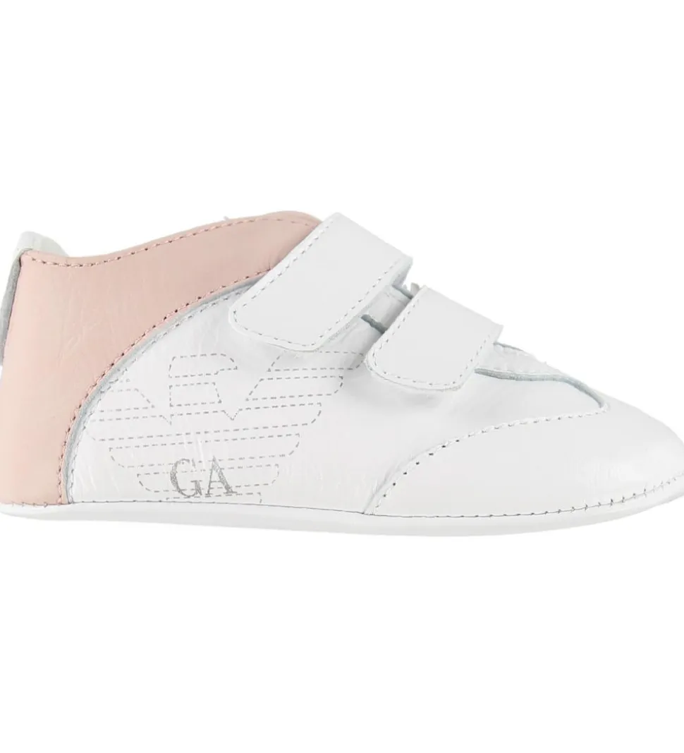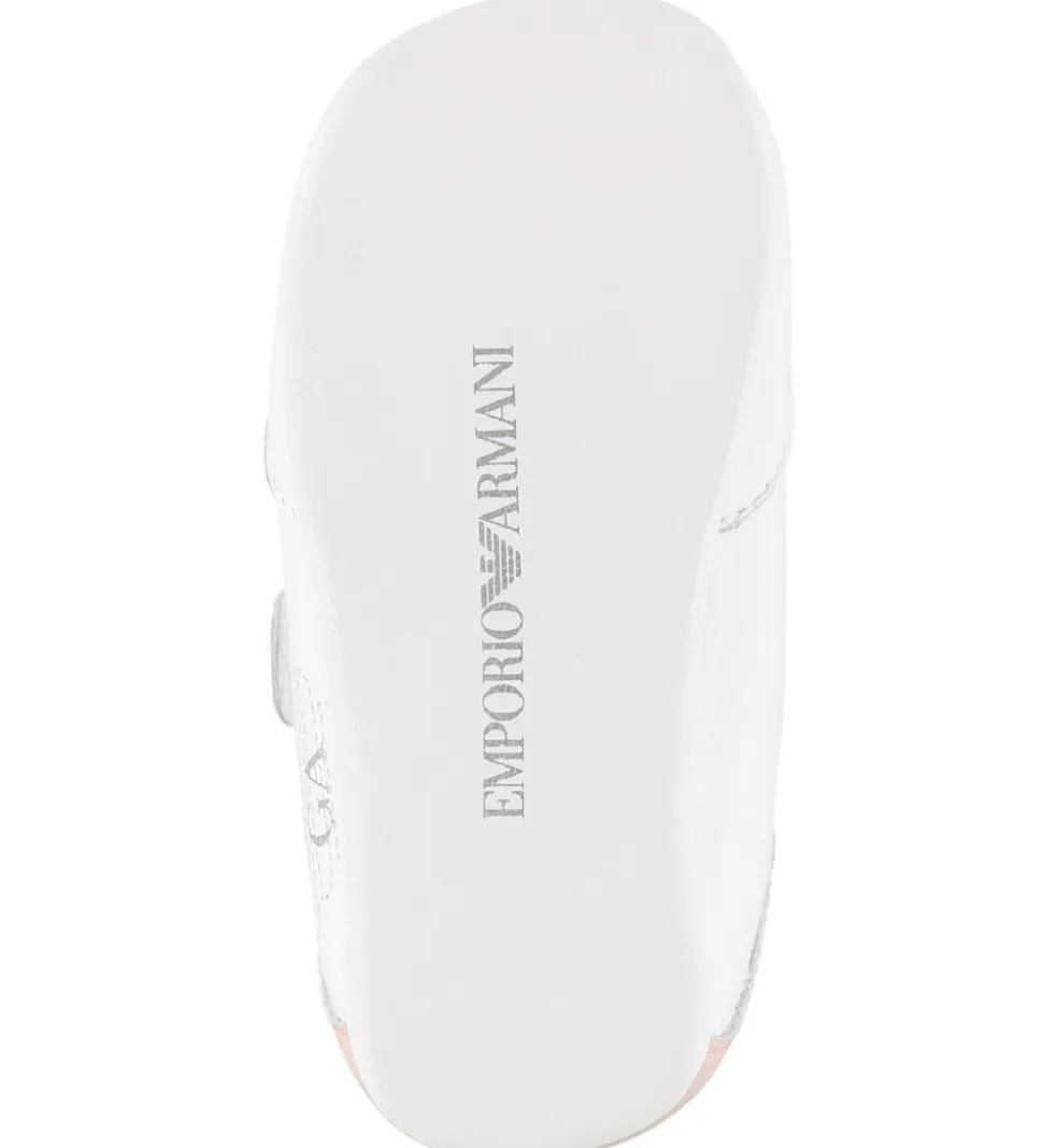 Flotte Emporio Armani hvid og rosafarvet læder med syningedetaljer og et sølvfarvet Emporio Armani logo på ydersiden.