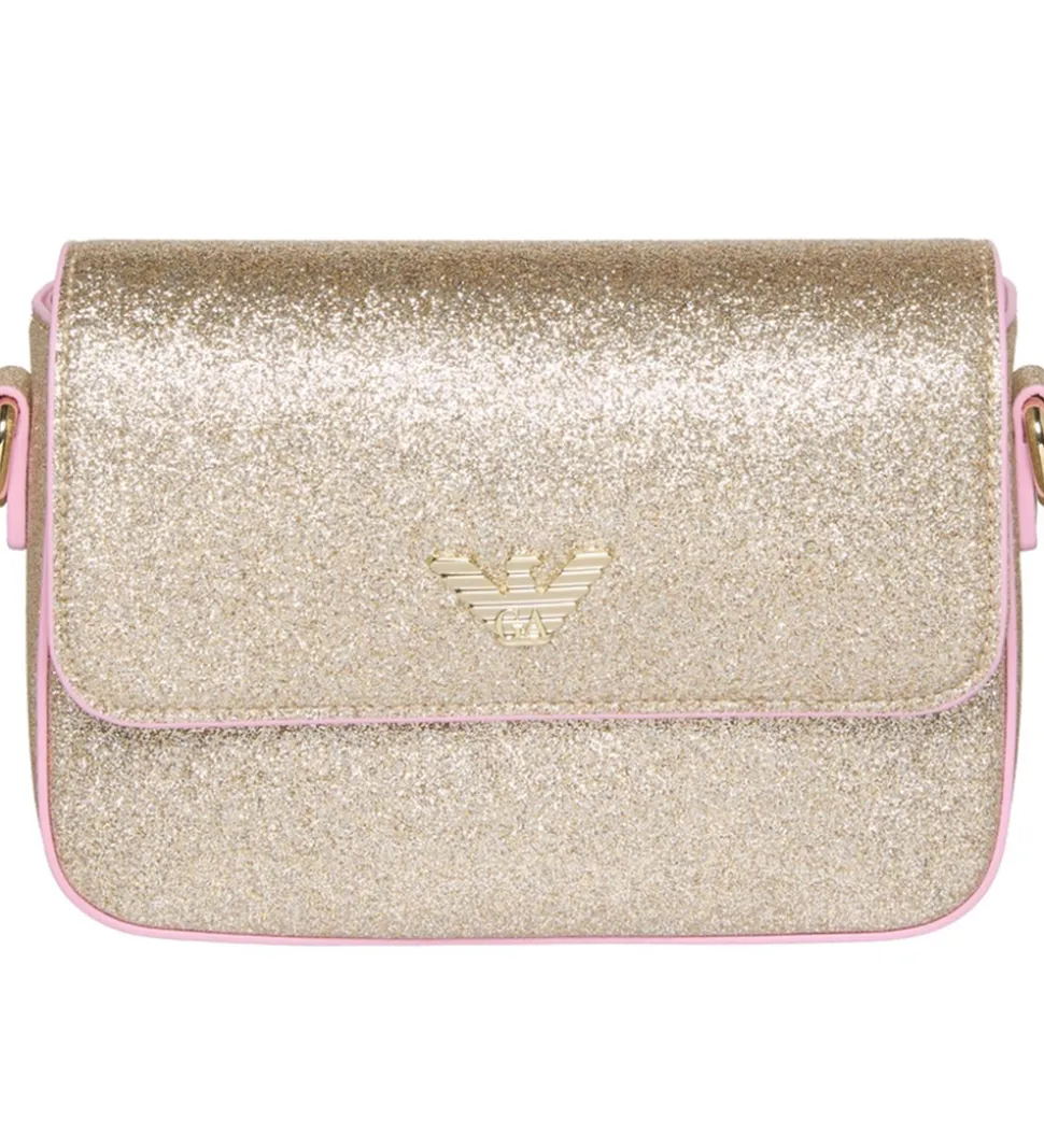 Fin Emporio Armani skulder taske i beige med guldglimmer og ros kanter. Fortil sidder der et logo af guldfarvet metal.