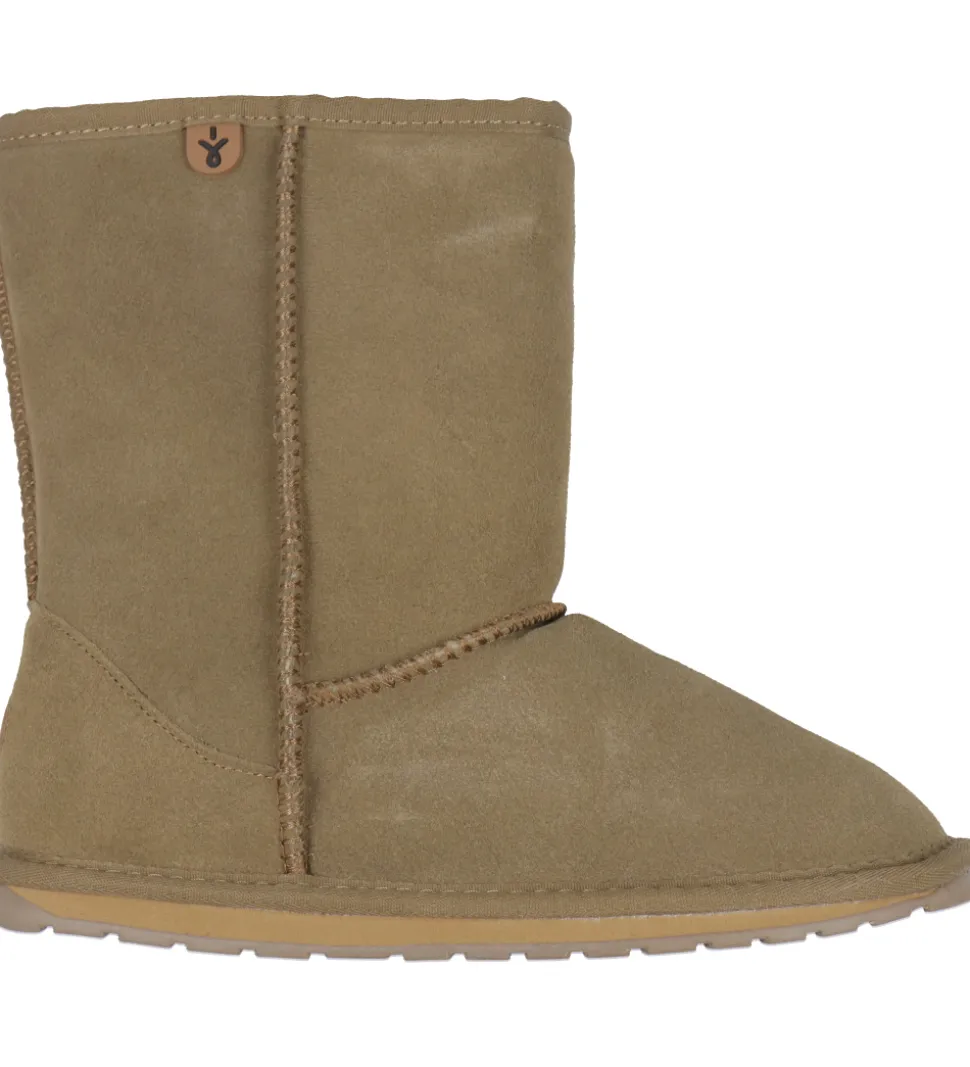 Lækre EMU Australia bamsestøvler i brunt ruskind med smarte udvendige syninger.