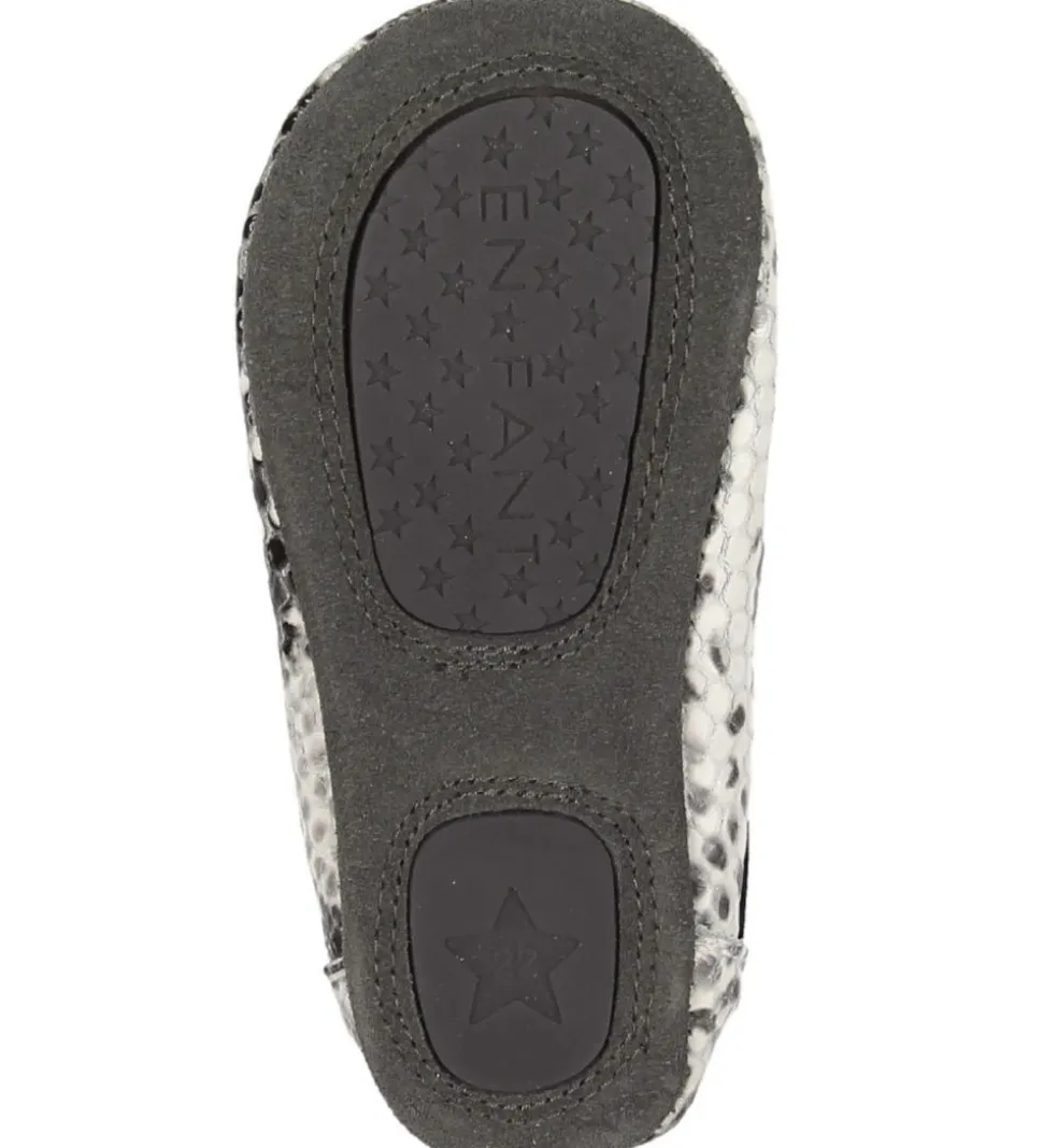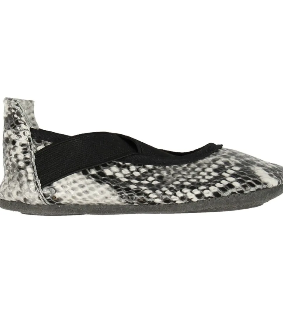 Flotte En Fant ballerina hjemmesko i grå og hvid med en smart slangeskindsstruktur.