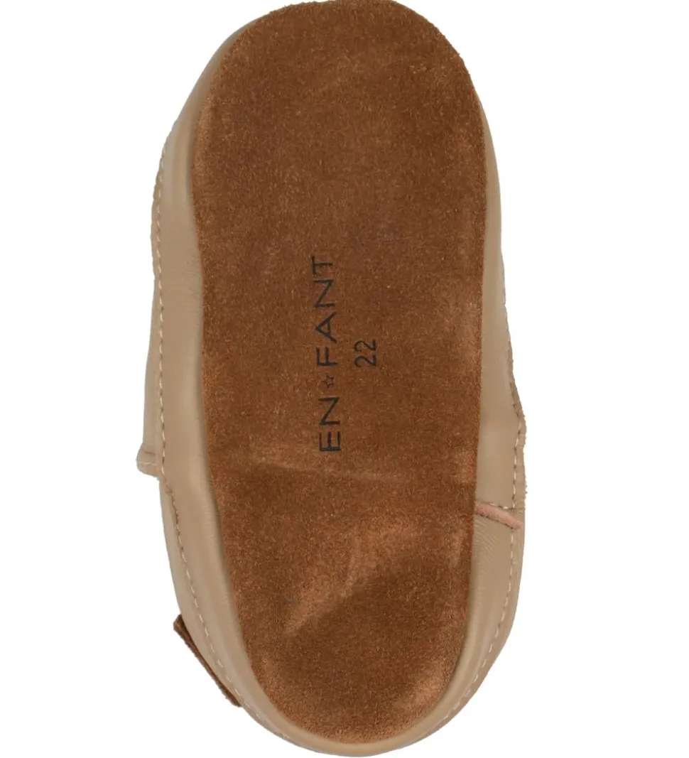 En Fant skindfutterne har en elastikkant i åbningen af skoene og en hank i hælen, så de er nemme at tage af og på, men samtidig også sidder ordentligt fast.