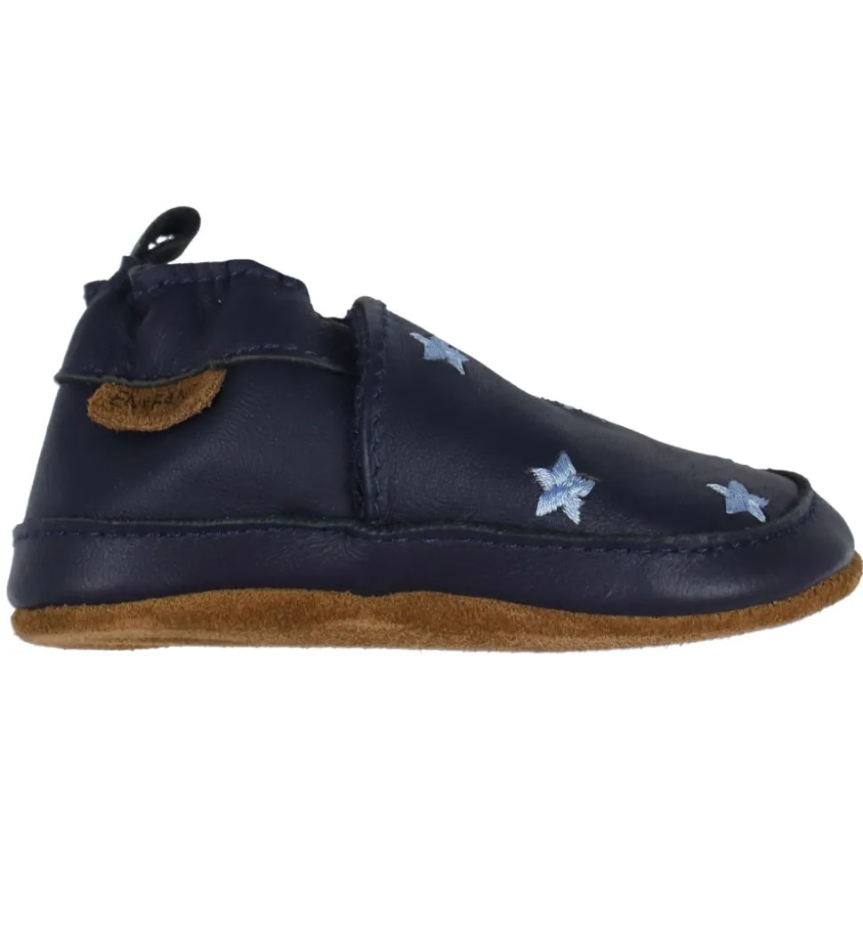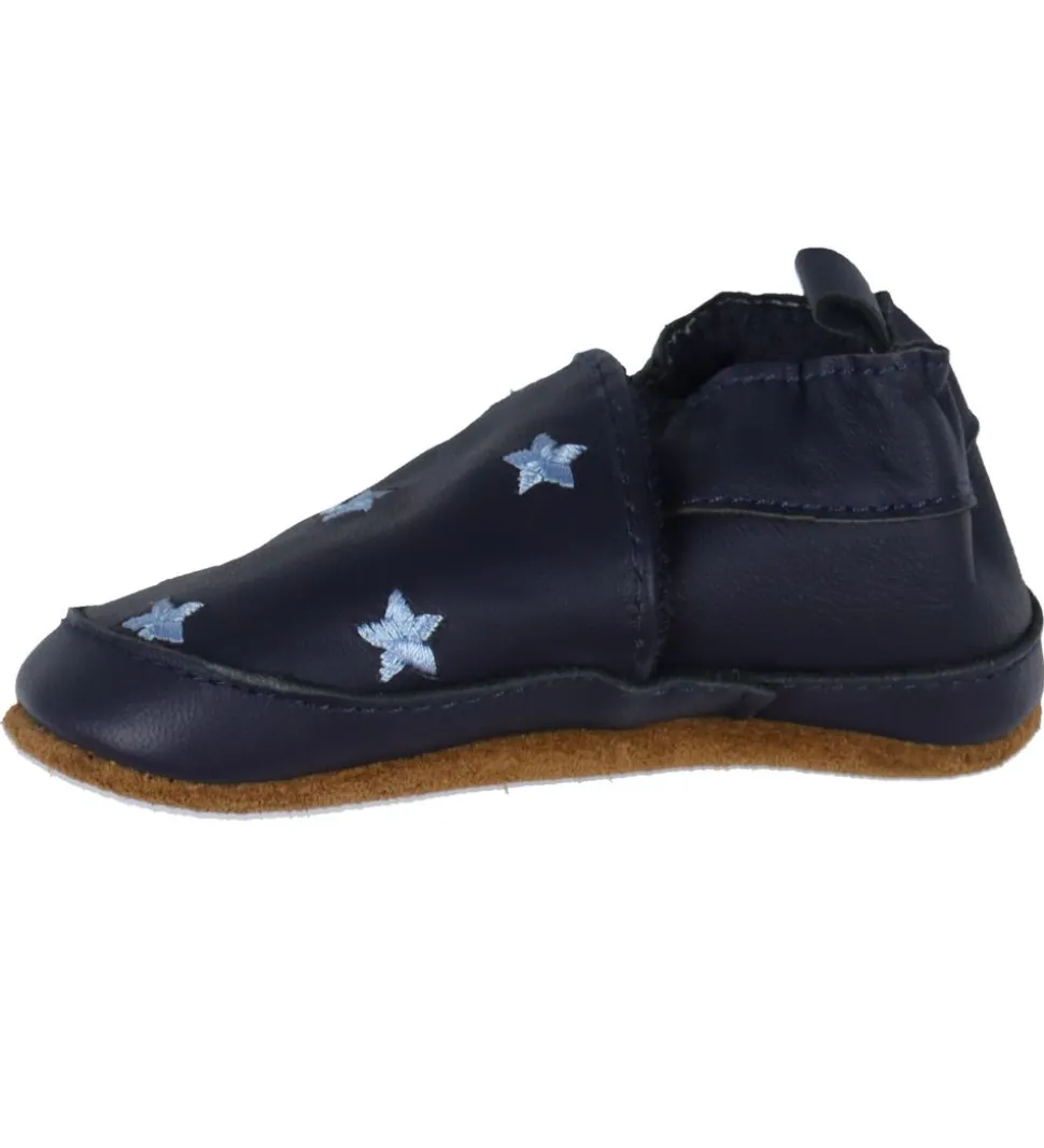 Skønne En Fant skindfutter i navyblåt skind med lyseblå, broderede stjerner på vristen.