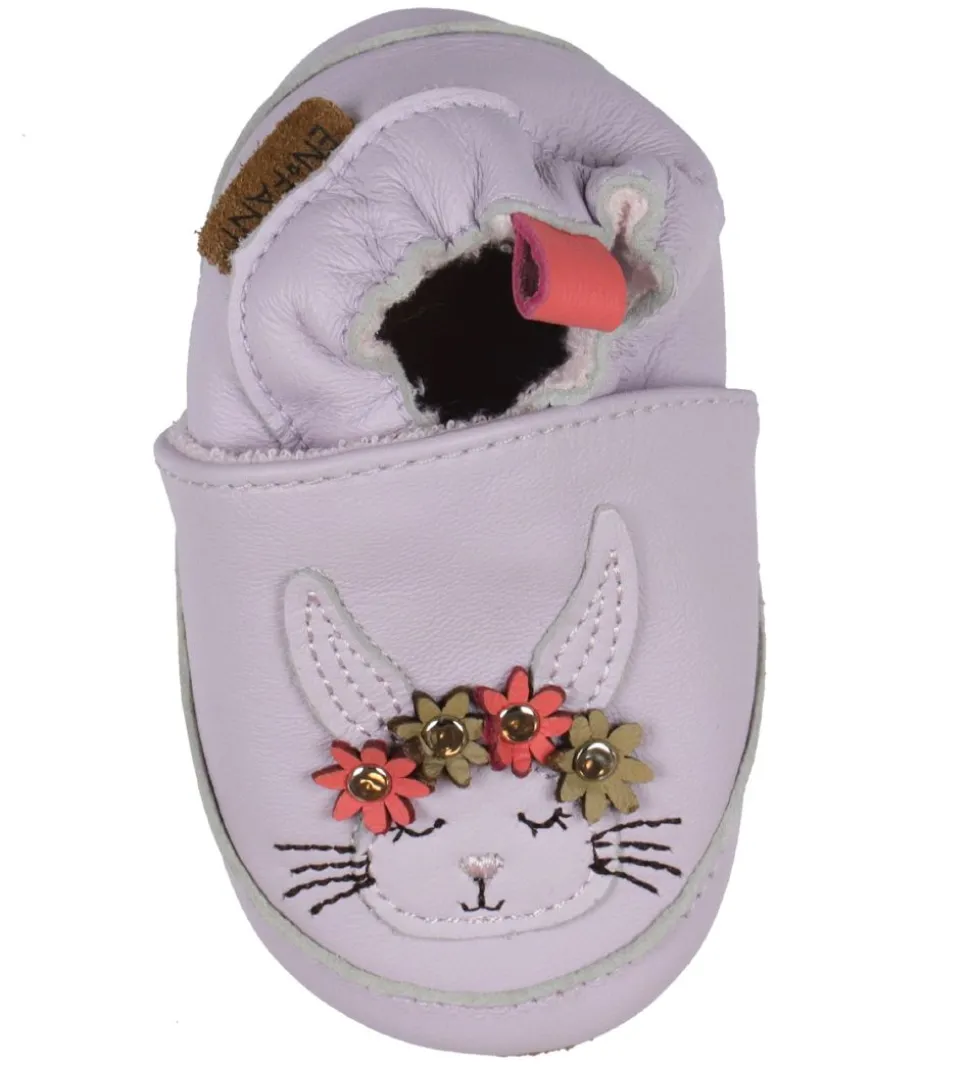 Skønne En Fant skindfutter i lys lilla med en sød kanin, der har farvede blomster om hovedet, på vristen.