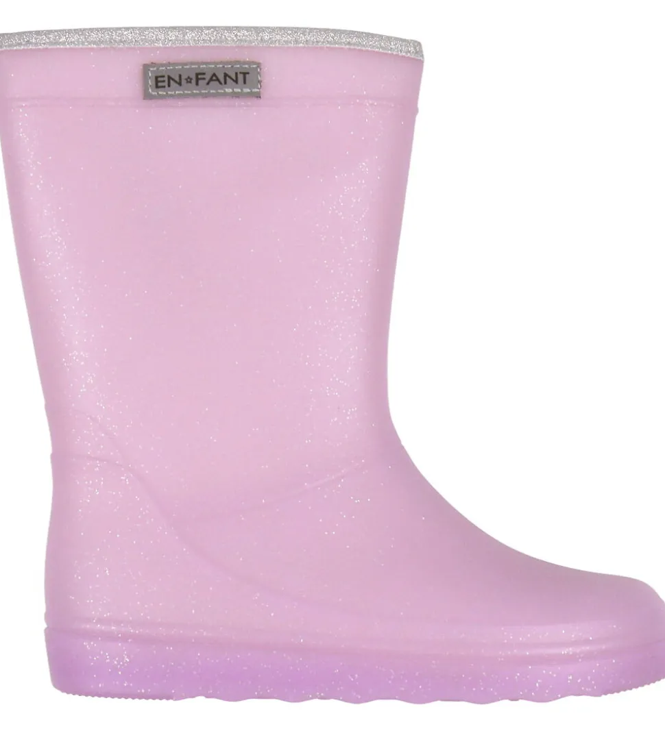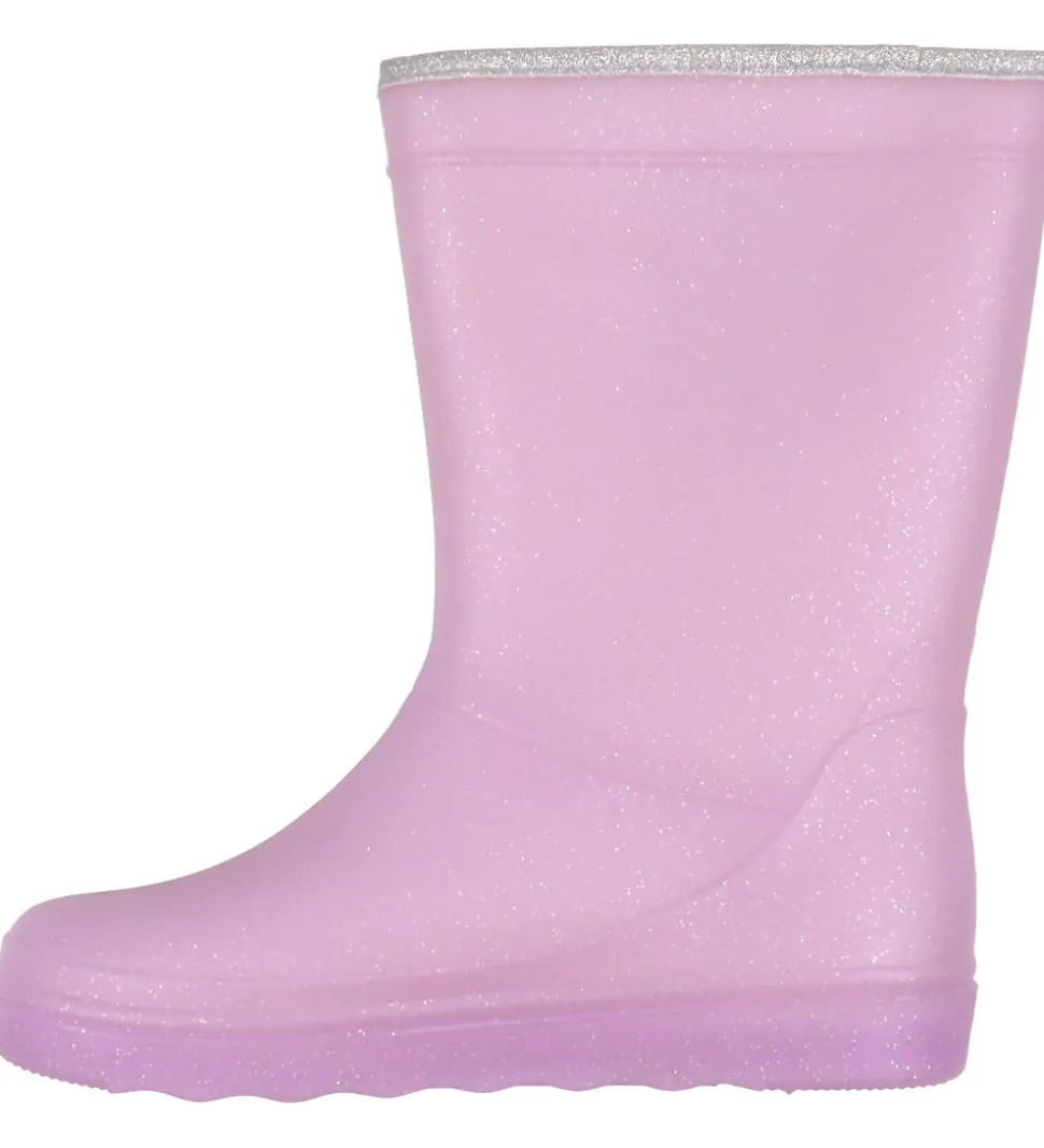 Fine En Fant termostøvler i lilla med sølv glimmer og med en kant i toppen i sølv glimmer.