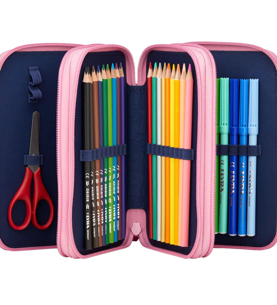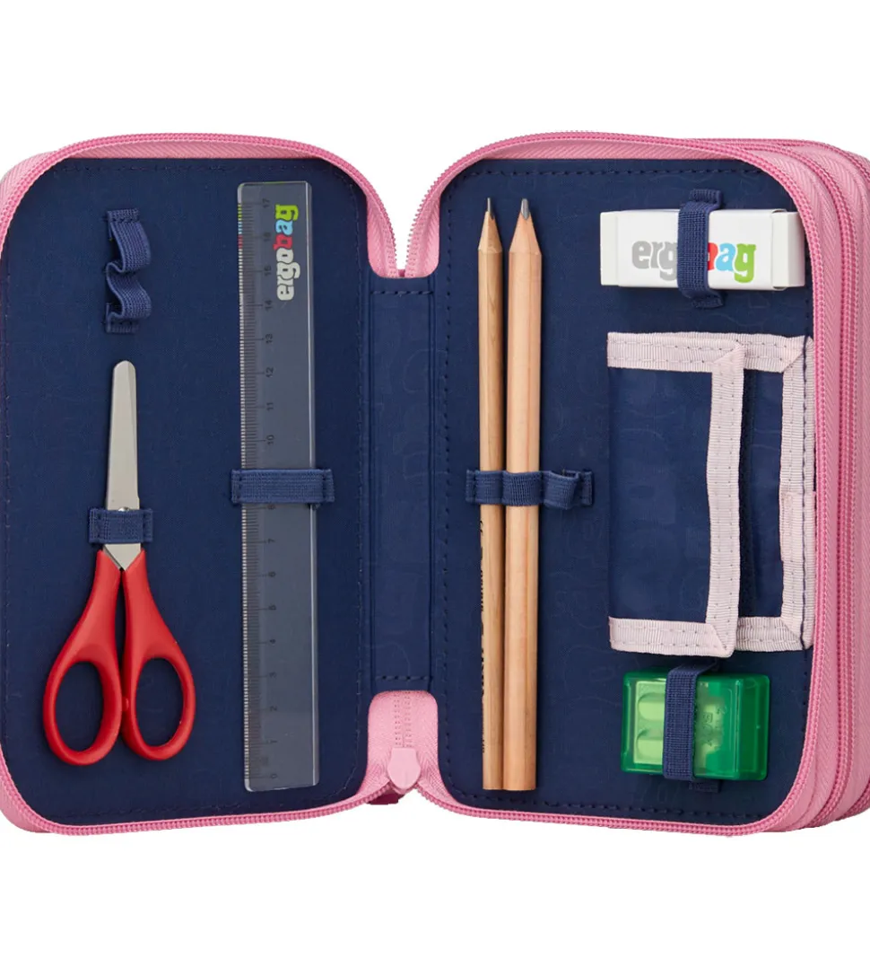 Ergobag penalhuset består af 3 dele, som hver åbnes med en lynlås og giver adgang til massevis af tilbehør i god kvalitet fra Lyra.