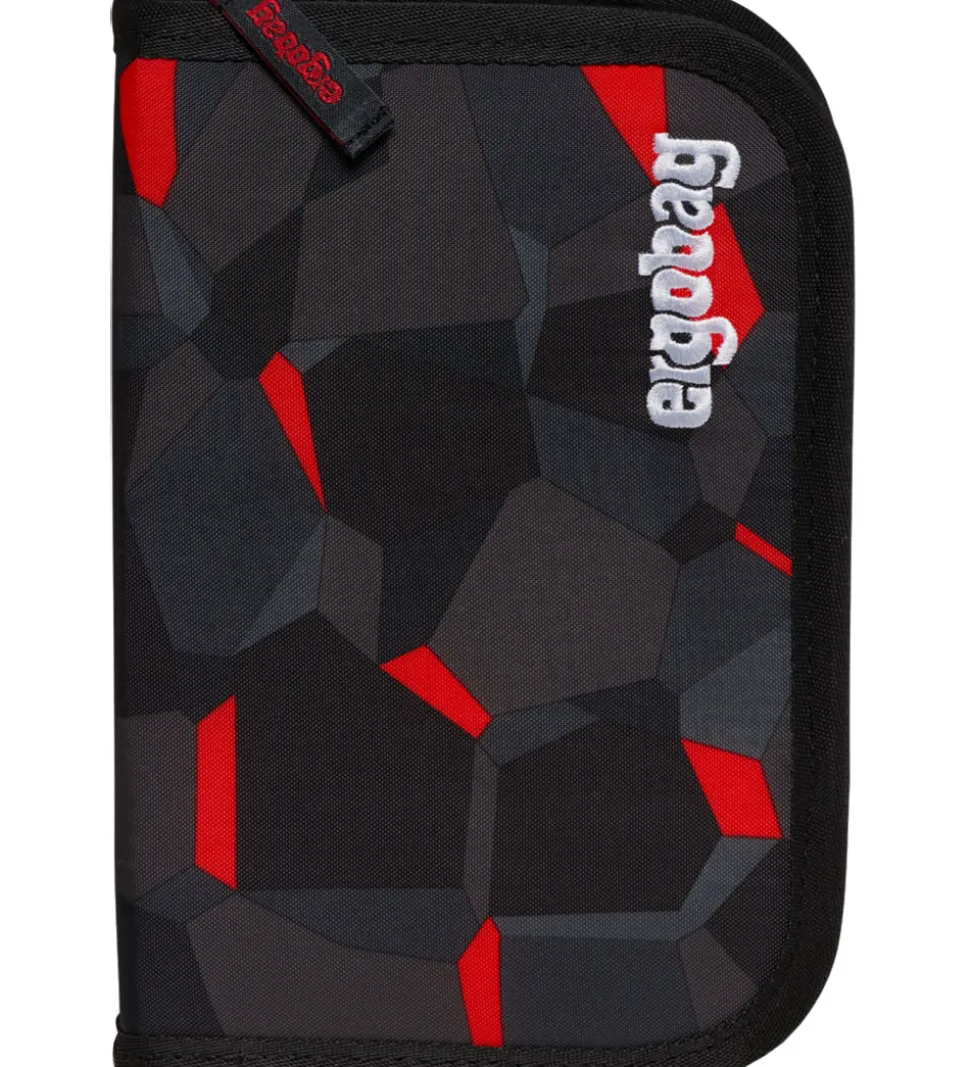 Smart Ergobag penalhus i sort og grå med fine røde detaljer.