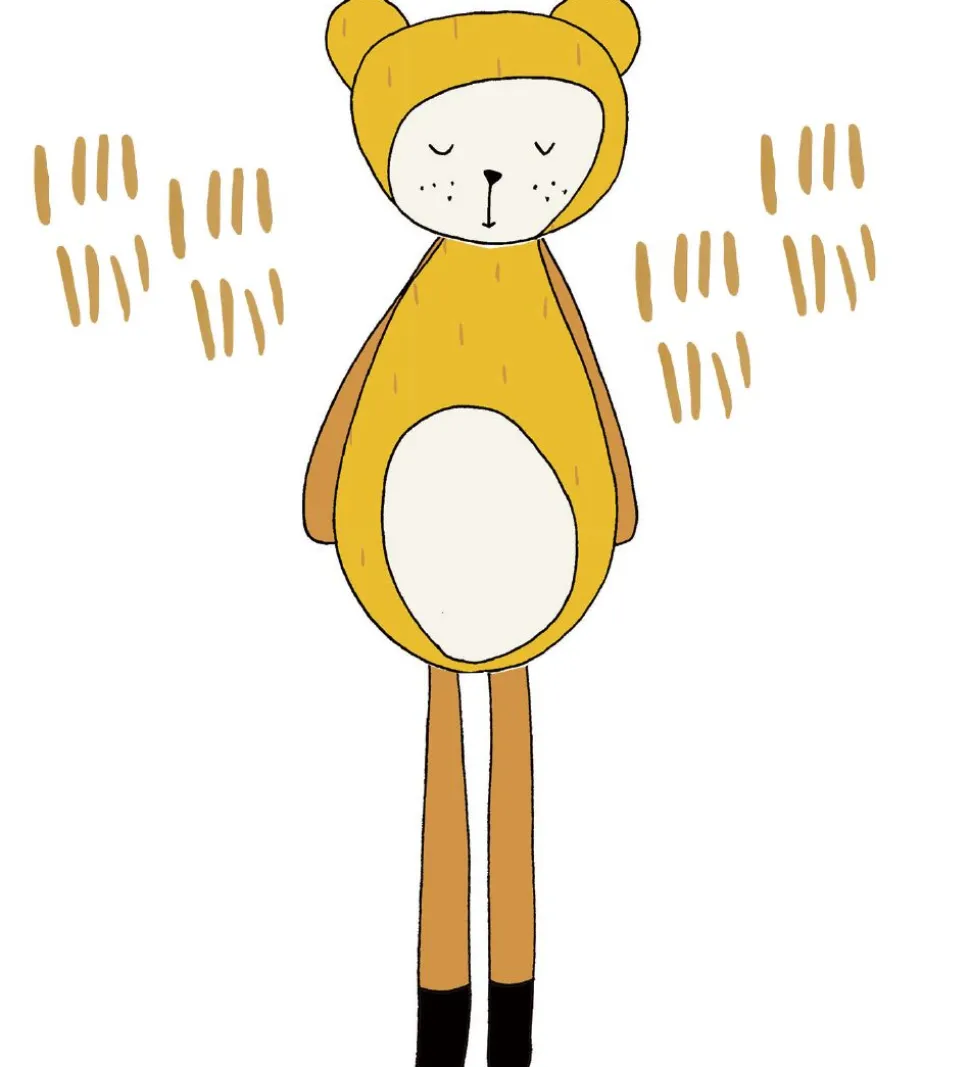Flotte Fabelab wallstickers i gul, hvid og brun af en sovende bjørn og forskellige streger.