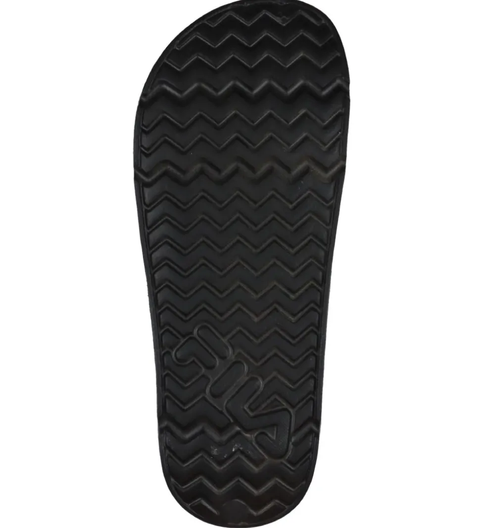 Lækre Fila badesandaler i sort. På remmene står der Fila i hvid og rød.