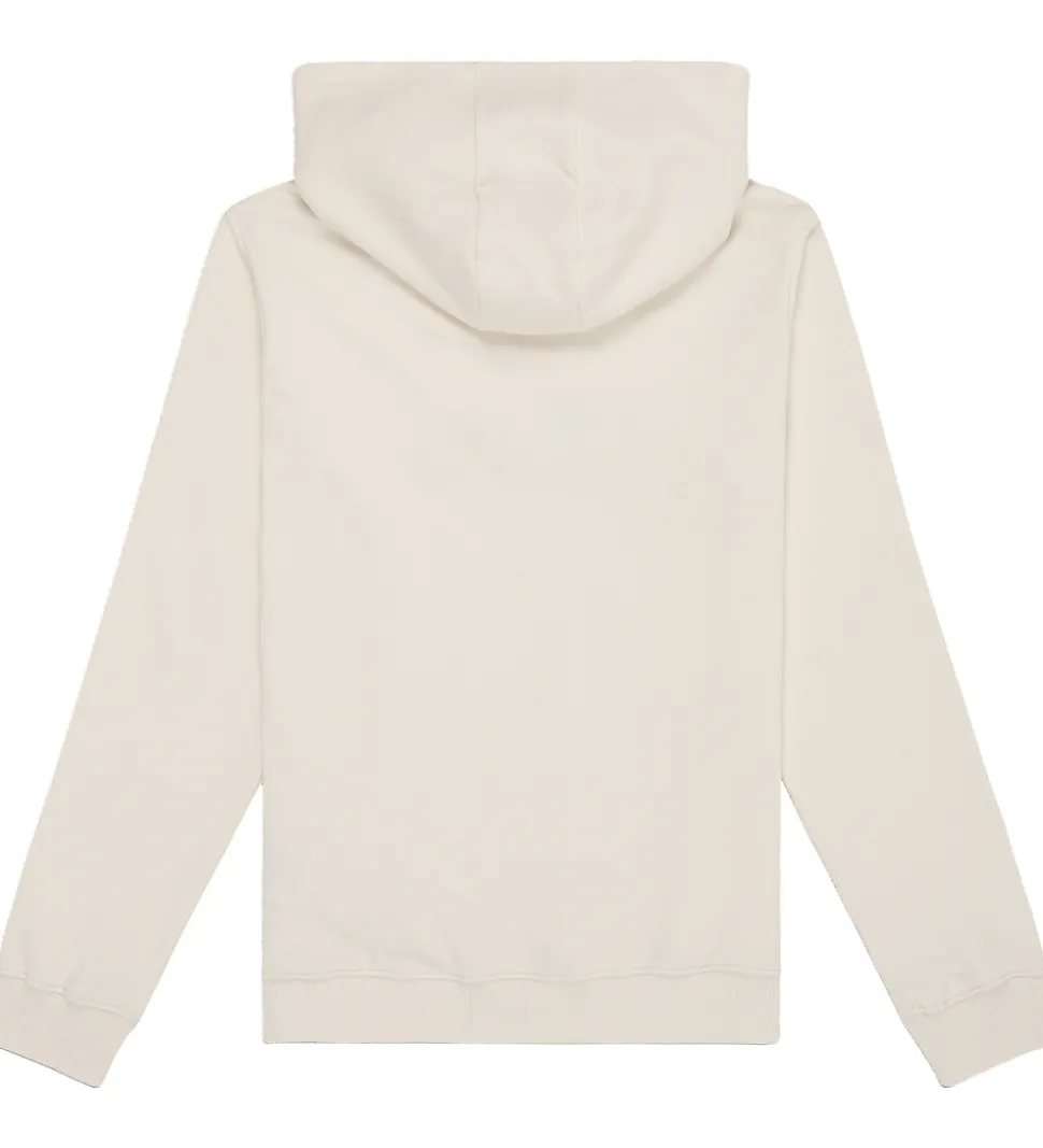 Stilfuld Fila hættetrøje i en lys cremfarve med et klassisk logoprint broderet på fronten. Fila hættetrøjen har “ESTABLISHED 1911” trykt under logoet. Hættetrøjen har en praktisk stor kængurulomme foran. Ribkanter ved håndleddene og i bunden sørger for en god pasform.