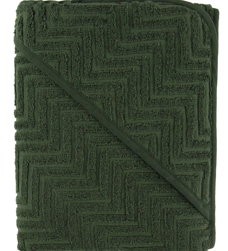 Lækker Filibabba babyhåndklæde i mørkegrøn med en fin zigzag struktur.