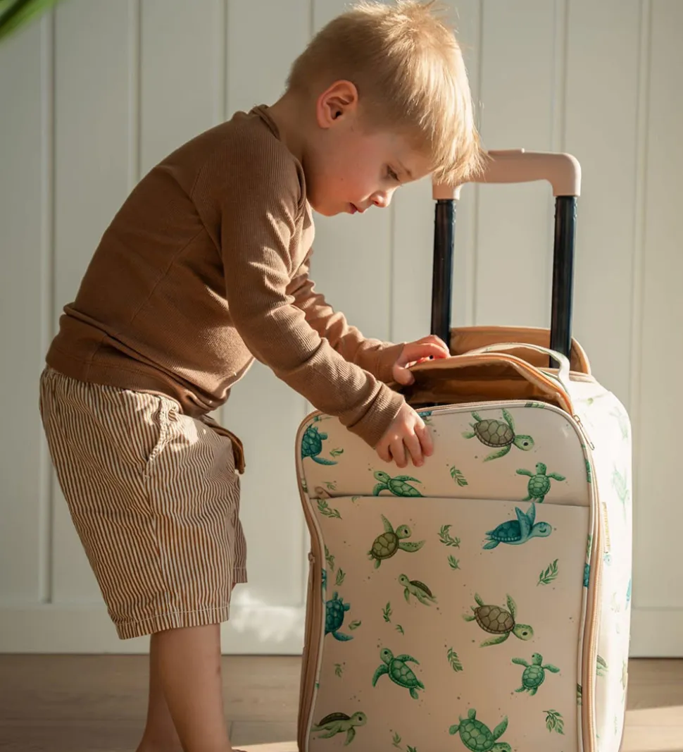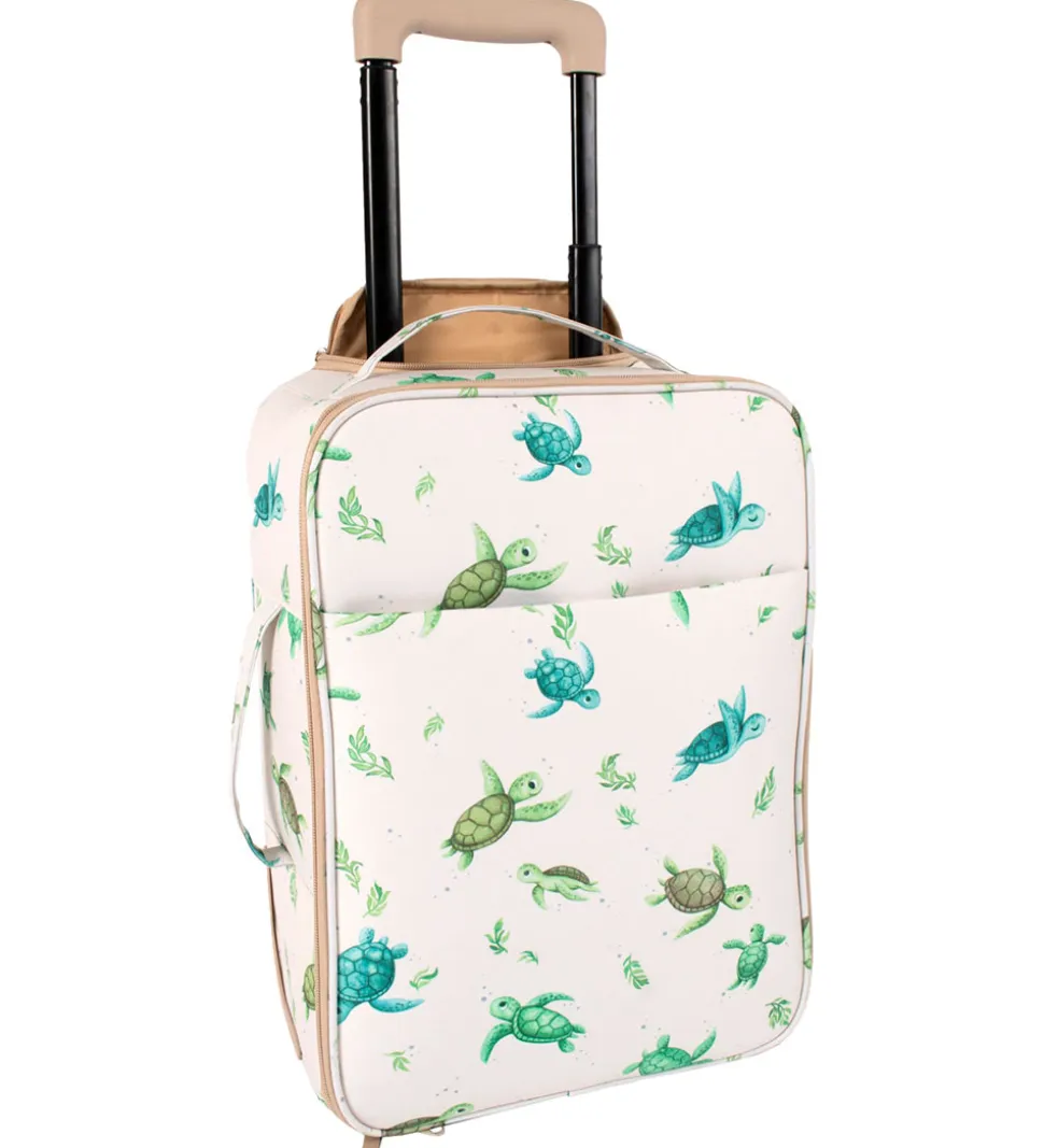 Smart Filibabba kuffert i cremehvid med et alloverprint af skildpadder i grønne nuancer.