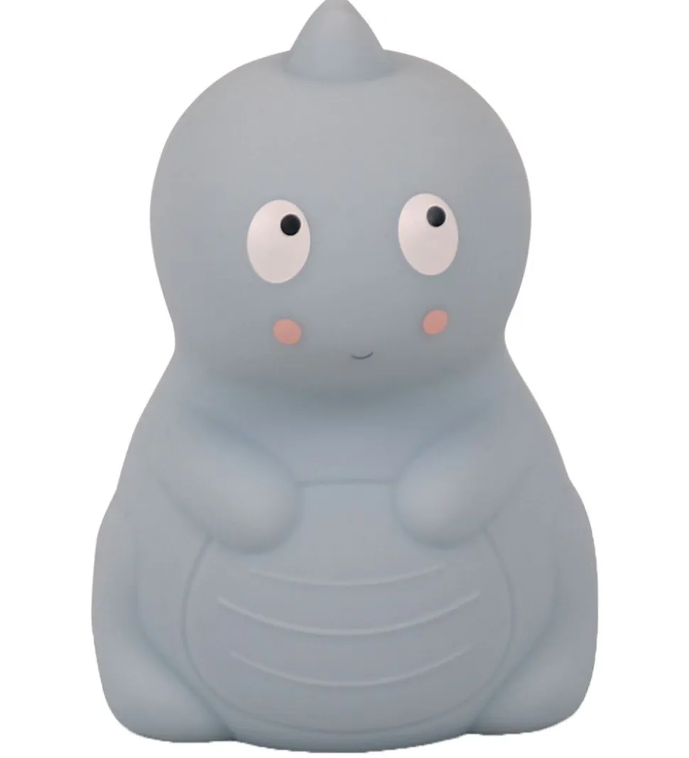 Skøn Filibabba lampe i støvet blå i modellen “Dinoen Dixter” formet som en dino.