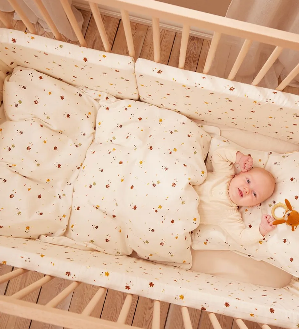 Sengeranden er lige til at sætte på babysengen eller i tremmesengen, så babyen undgår at ligge i træk. Betrækket på sengeranden kan tages af med den synlige lynlås på den ene langside, så den nemt kan vaskes.