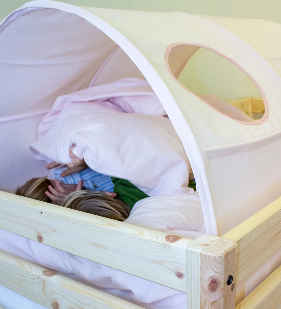 Flexa hulen er et skønt skjulested, der kan rumme både hygge, eventyr, fantasi og afslapning. Den er af stof og har et vindue i loftet, der er sjovt at kigge ud af og samtidig giver god ventilation. Hulen kan bruges for sig selv, men passer også sammen med mange af Flexas senge.