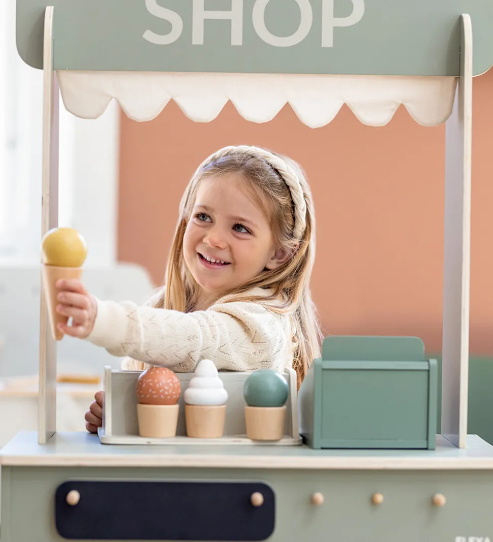 Flexa trælegetøjet er perfekt til barnet, der elsker at lege med legemad og indeholder 18 dele: