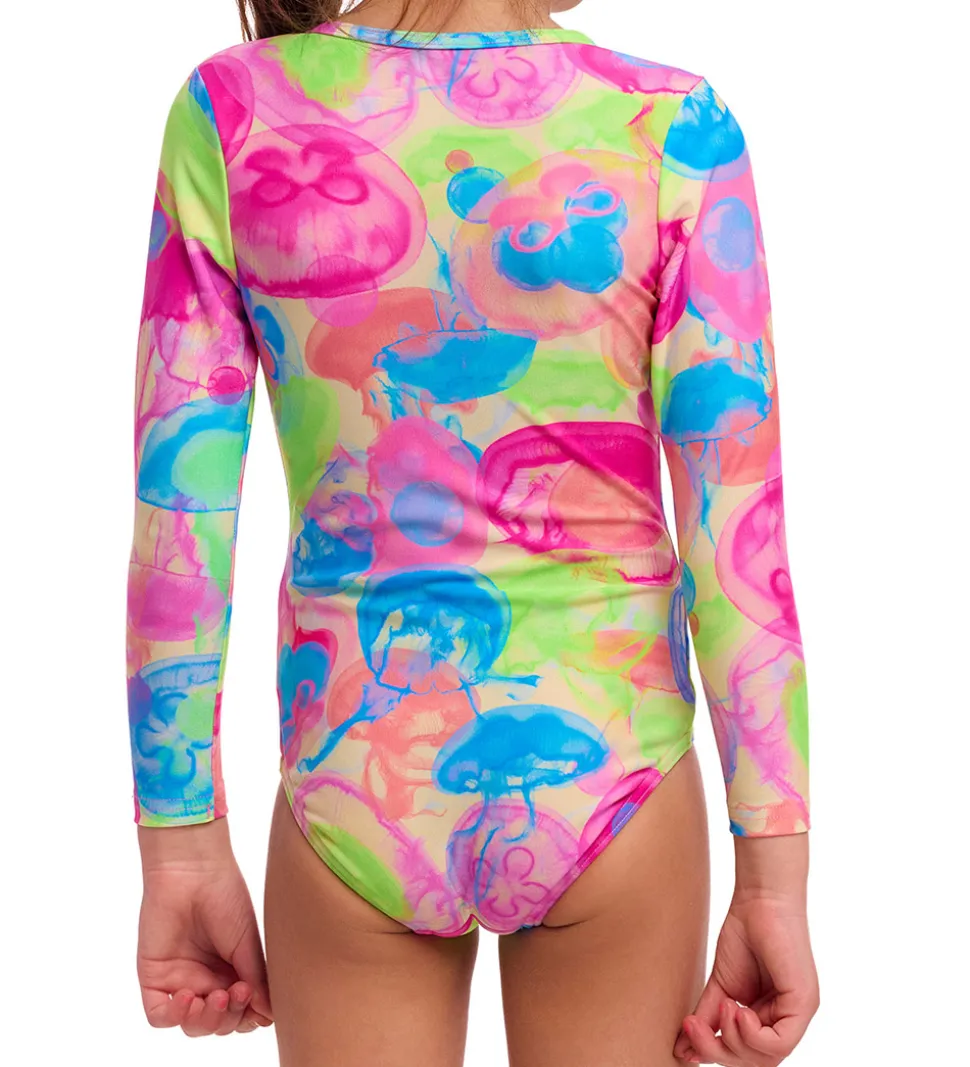Smart Funkita badedragt med farverigt print af vandmænd i forskellige farver.