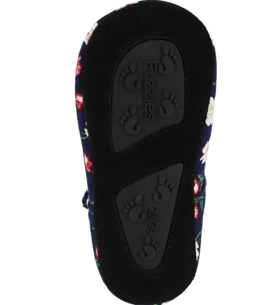 Yndige Fuzzies ballerina hjemmesko i navy med fine blomster.