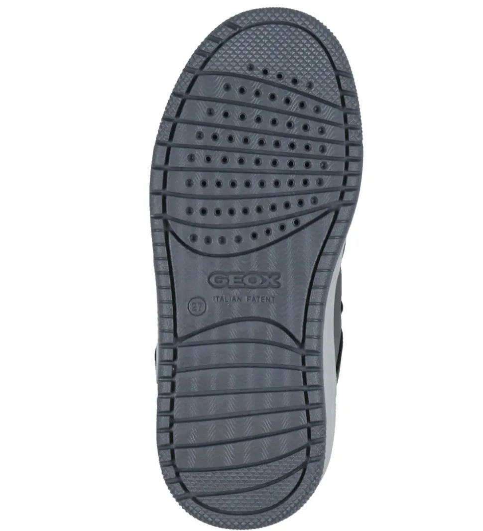 Geox støvlerne er en halvhøj model, som går op til anklerne. De har elastikbånd over vristen, og de lukkes med velcro i toppen. På indersiden er der åndbart mesh, og støvlerne har udtagelige indersåler.