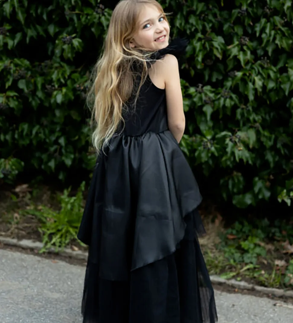 Great Pretenders udklædningen består af en lang, sort kjole med lagdelt tylskørt og lukkes i nakken med velcro.