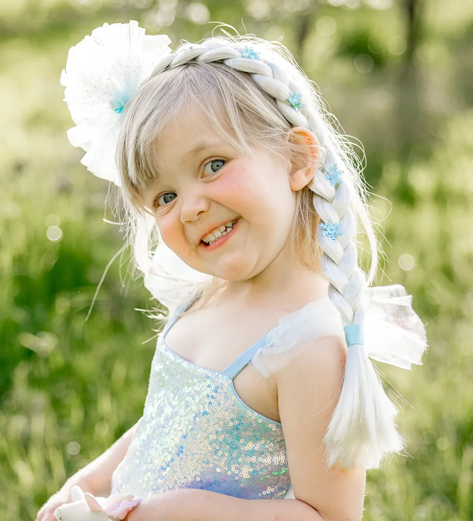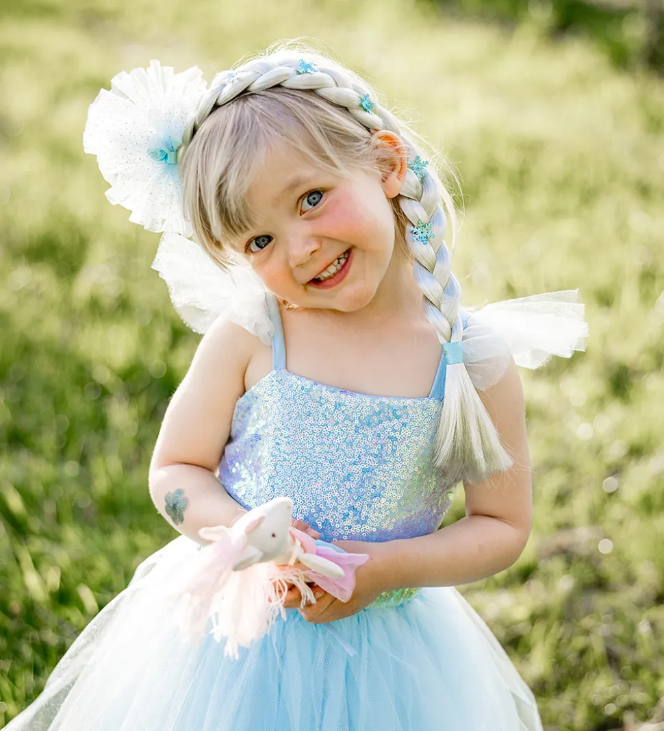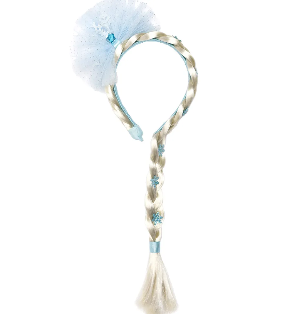 Skøn Great Pretenders hårbøjle i lyseblå med en blond fletning samt fine tyl-detaljer, snefnug og glimmer-detaljer.