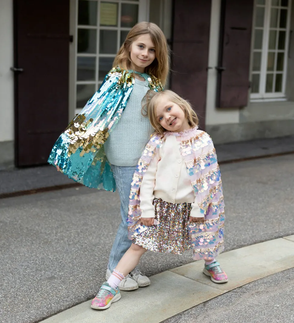 Flot Great Pretenders udklædning i form af en tylkappe i rosa med pailletter og guldglimmer. Great Pretenders udklædningen lukkes med velcro.