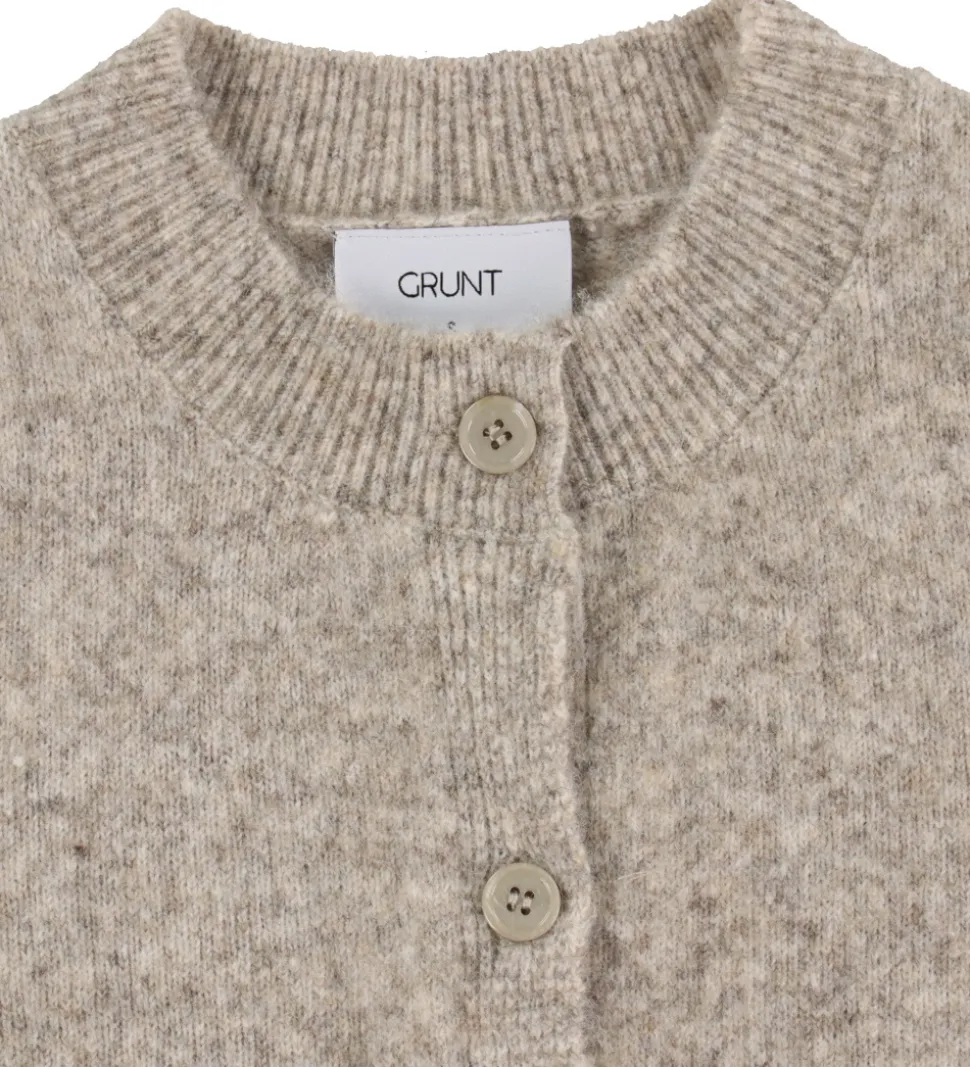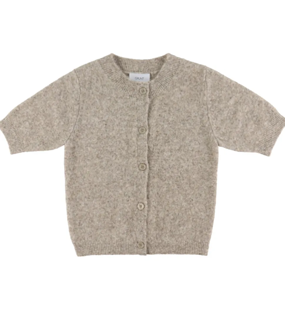 Flot Grunt cardigan i meleret beige i en blød, strikket kvalitet. Cardiganen har korte ærmer, og den lukkes med knapper. Pasformen er afslappet, hvilket sikrer en god bevægelsesfrihed.