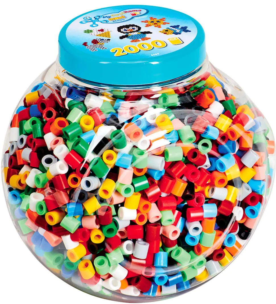 Flotte Hama perler i multifarvet. Hama perlerne kommer i en praktisk stabelbar bøtte og indeholder 2000 Maxi perler.