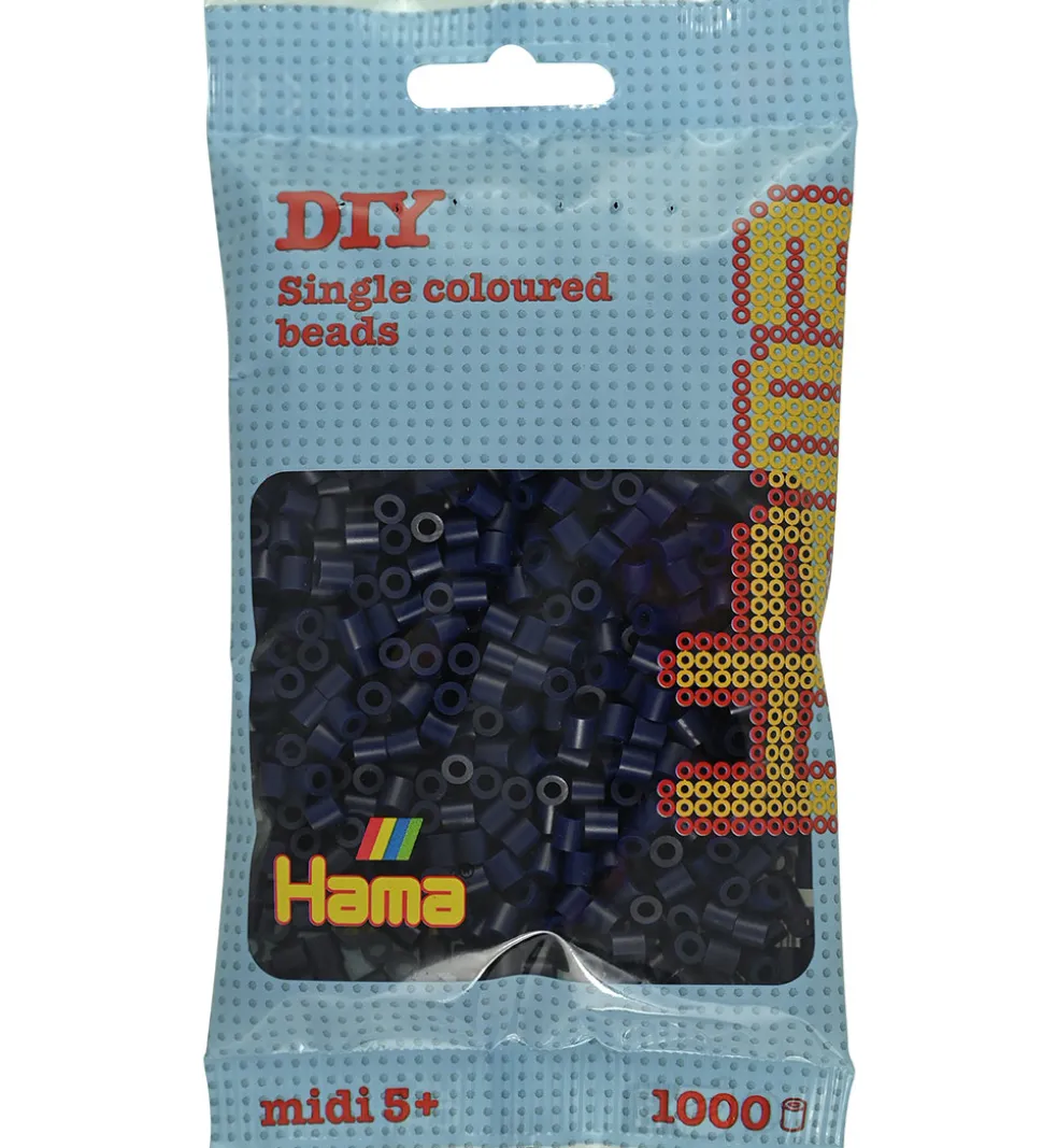 Fine Hama perler i ensfarvet midnatsblå.