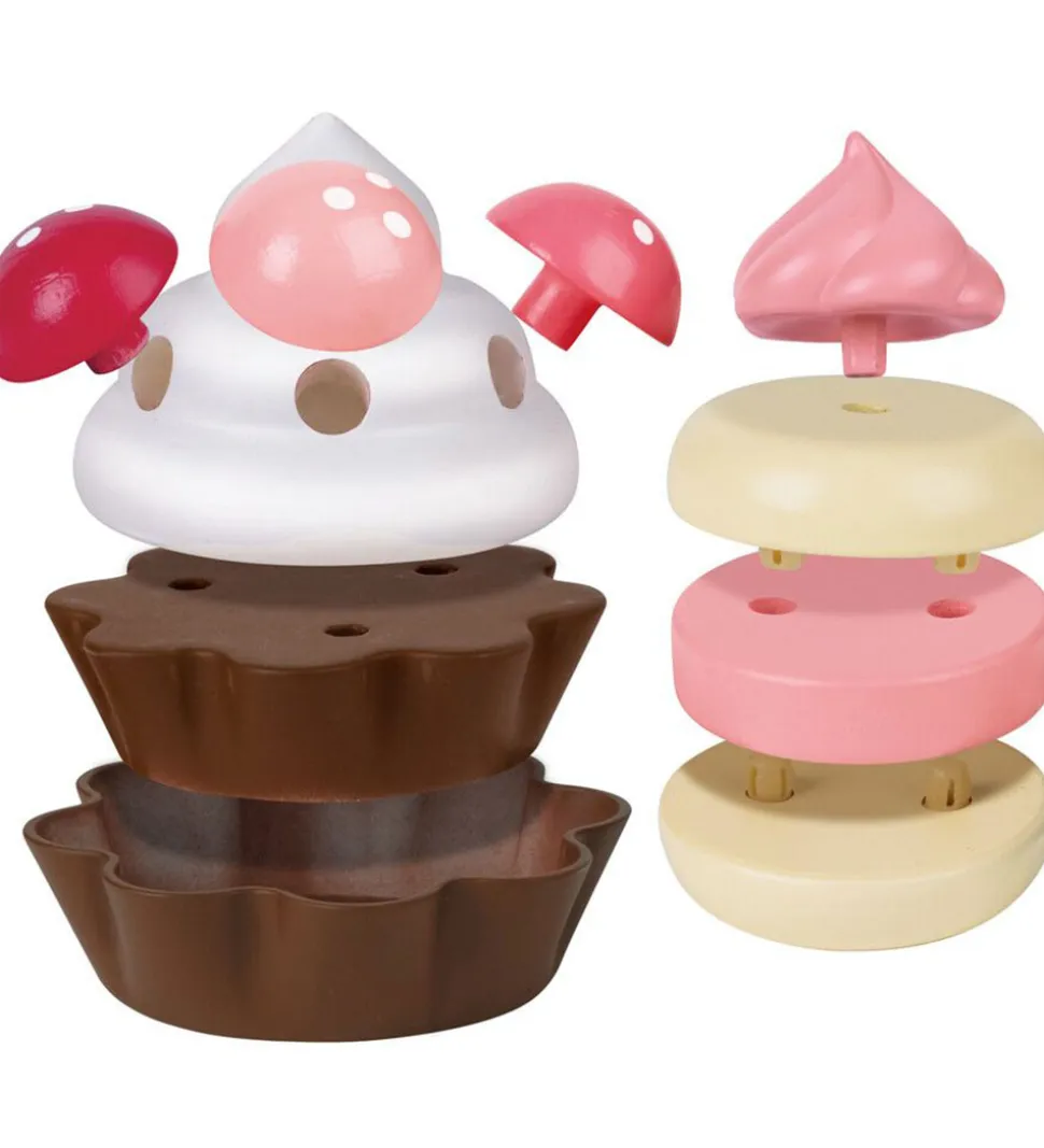 Sjovt Hape legmad i træ og gummi i form af lækre jordbærdesserter.