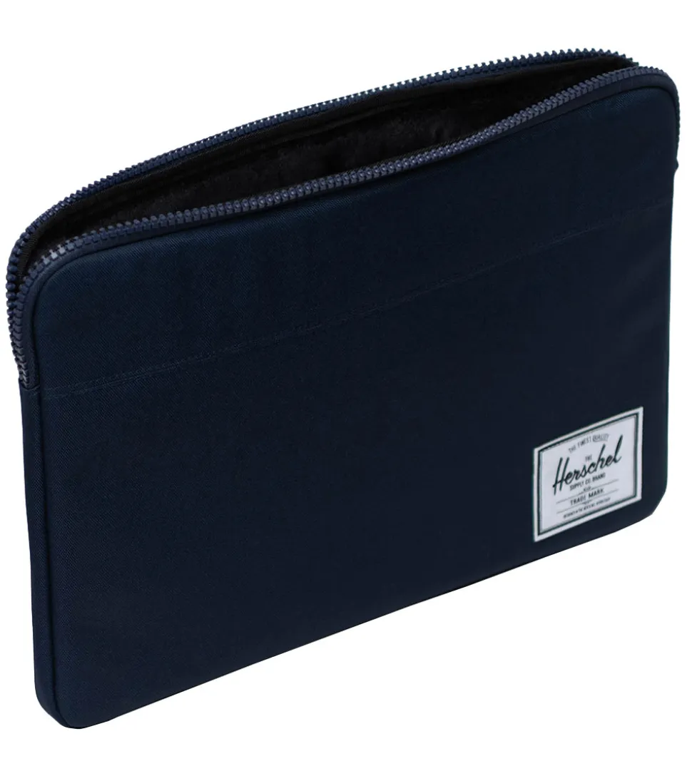 Elegant Herschel sleeve i en dyb navy farve med et Herschel logopatch på fronten. Sleeven er designet til at beskytte din enhed med stil.