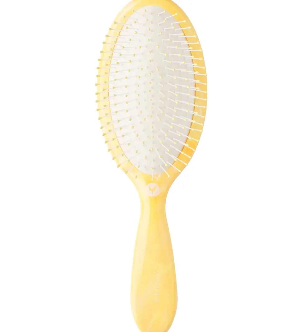 HH Simonsens Wonder Brush har fleksible Smartflex børstepigge, som mindsker risikoen for spaltede spidser og knækkede hår. Hårbørstens spidser har runde ender, som giver behagelig massage til hovedbunden.