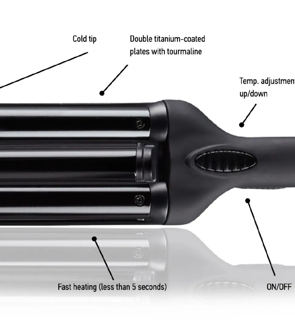 Bølgejernet gør det super nemt at skabe smukke og holdbare bølger i håret. Bølgejernet har en temperatur på 200 grader, og har en keramisk Teflon-coating med turmalin, der sikre optimal glans af håret og er samtidig beskyttende mod håret.