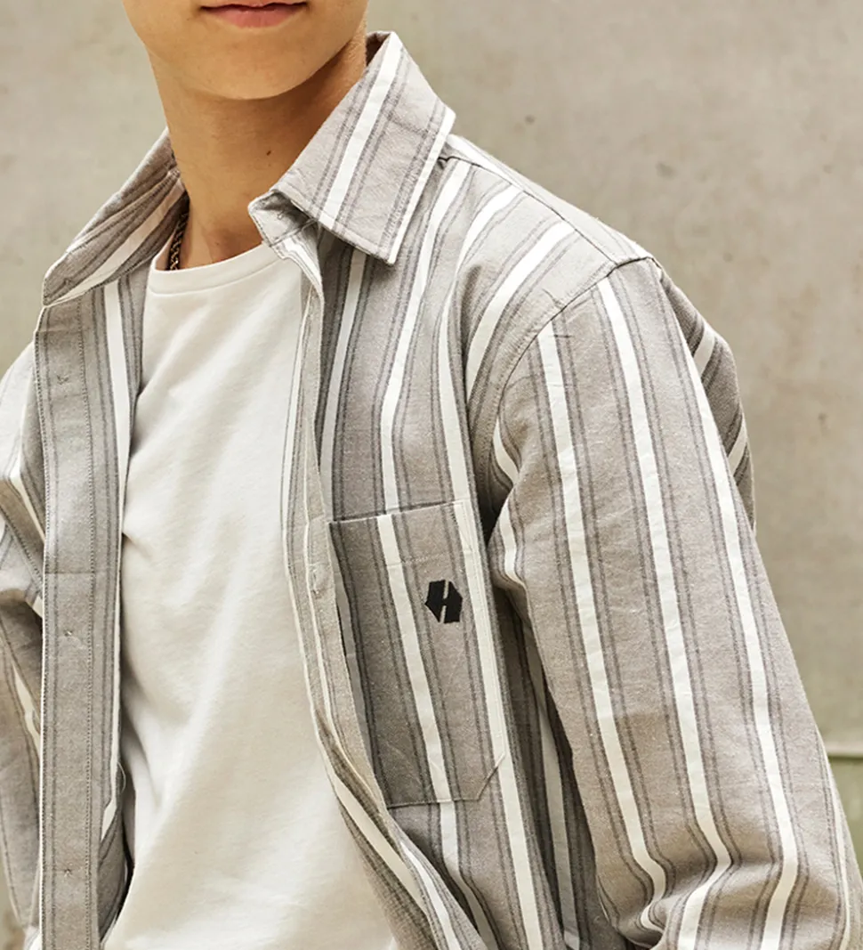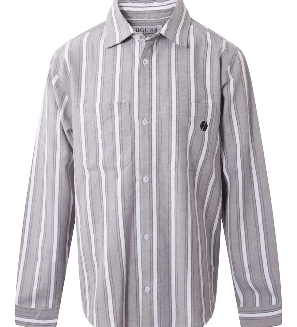 Flot Hound skjorte med lange ærmer i en grå nuance med striber. Skjorten har to praktiske brystlommer og et stilrent design, der gør den nem at style til forskellige anledninger.