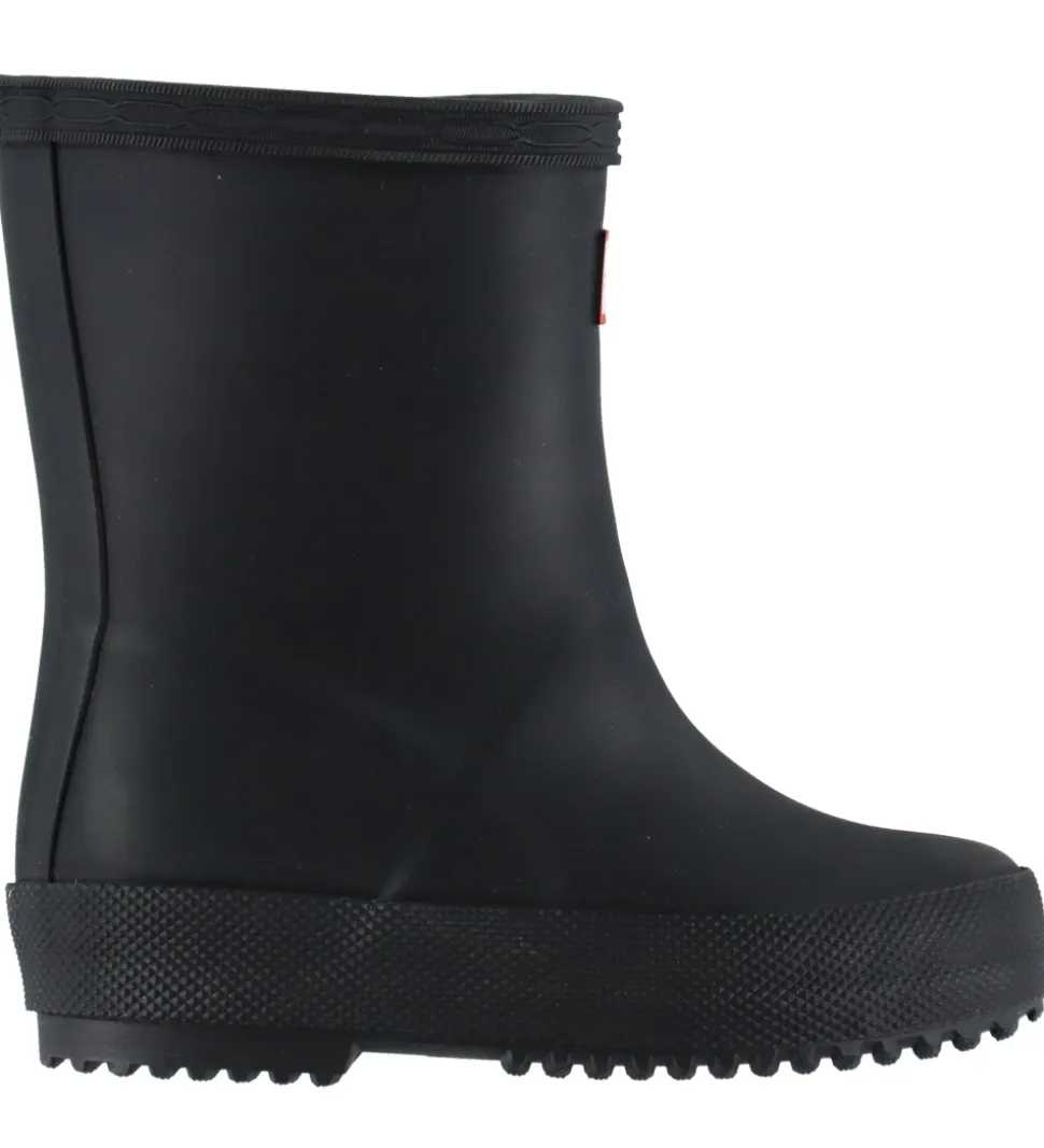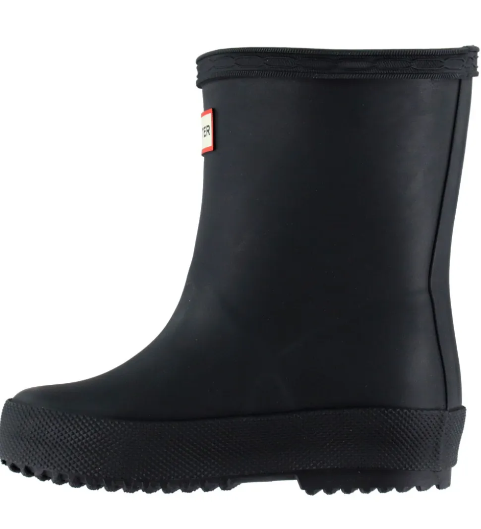 Praktiske Hunter gummistøvler i mat, ensfarvet sort med et logo på fronten af skaftet.