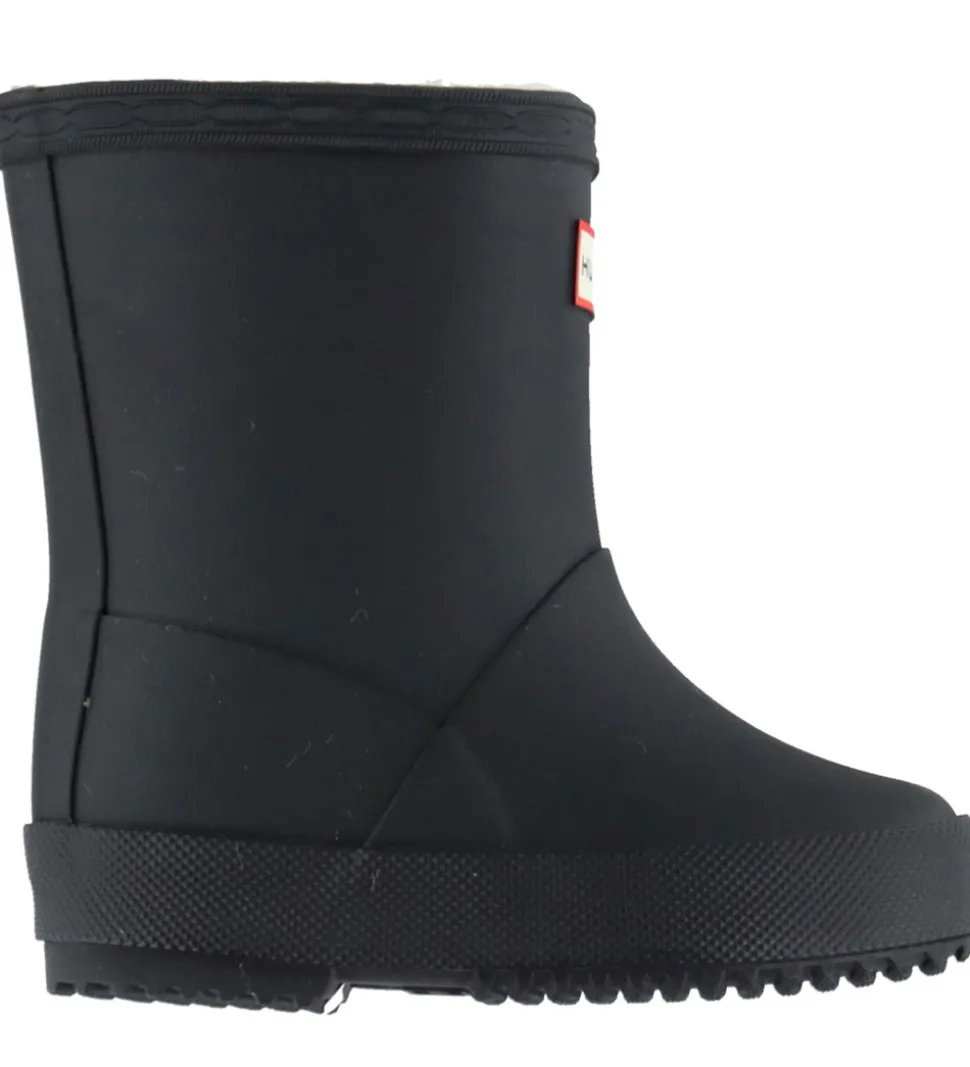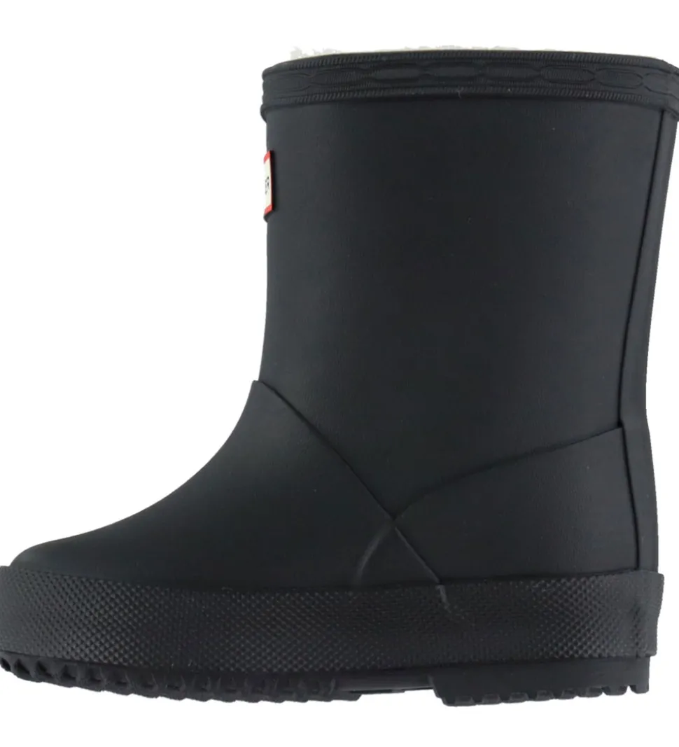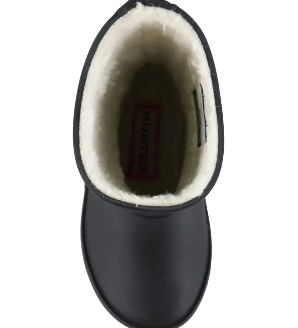 Lækre Hunter gummistøvler med for i sort. Gummistøvlerne prydes af et klassiske Hunter-logo fortil på skaftet.