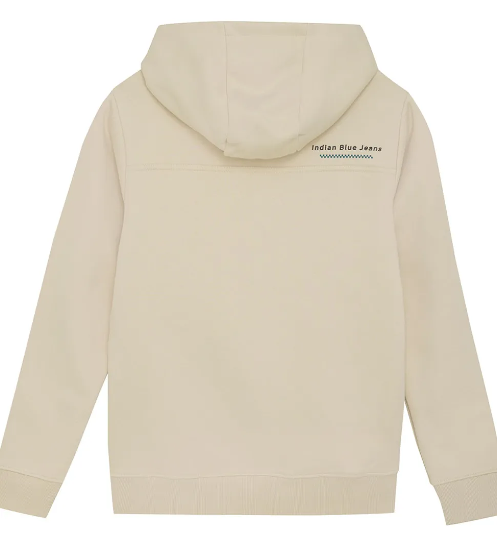 Elegant hættetrøje fra Indian Blue Jeans i beige sweat. Hættetrøjen har en fast hætte medet bomuldsfor, og fortil er der en praktisk lomme. Hætterøjen har bløde ribkanter.